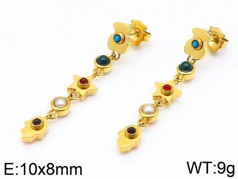 Colorful round zircon stones, shining and moving: In the various shapes of the earrings, there are multiple dazzling round zircon stones embedded. These zircons come in a variety of color combinations, such as red, blue, green, etc., each carefully selected and cut to ensure that they can emit a dazzling light under the light. These colorful round zircons not only add more highlights to the earrings, but also make the wearer emit charming radiance in every movement.
