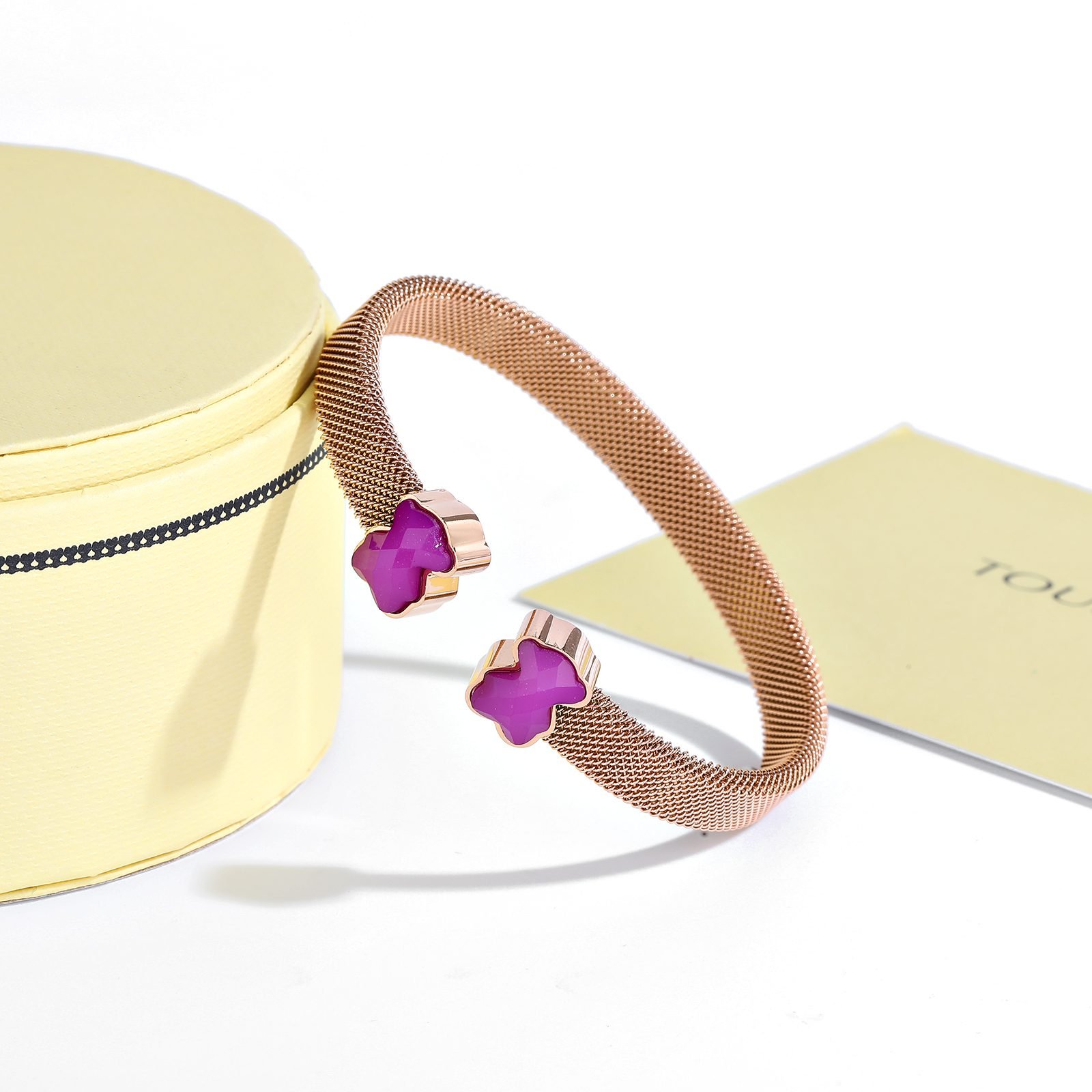 The bracelet features an open design, which means it can be freely adjusted according to the size of your wrist. Whether it’s a slim or slightly wider wrist, you can find the most suitable way to wear it. This design not only makes it convenient to wear, but also greatly improves the comfort of the bracelet, allowing you to feel almost no sense of restraint during the wearing process. The TOUS teddy bear bracelet is not just a piece of jewelry, but also a means of emotional attachment and transmission. The innocence and warmth represented by the image of the little bear symbolize the ability to maintain a childlike heart no matter how time changes; The combination of purple and gray symbolizes the ability to maintain inner peace and determination in a complex and ever-changing world. Choosing this bracelet is choosing a lifestyle attitude – simple yet not simple, elegant yet unique.