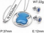 TOUS, A brand known for its unique craftsmanship and romantic feelings, once again with extraordinary creativity and exquisite craftsmanship, we have launched this heart stirring stainless steel circular ring big blue zircon bear necklace and small blue zircon earring set for you. This set of accessories not only combines classic and modern aesthetic concepts, but also adds a fresh and elegant charm to your outfit with unique blue zircon accents.