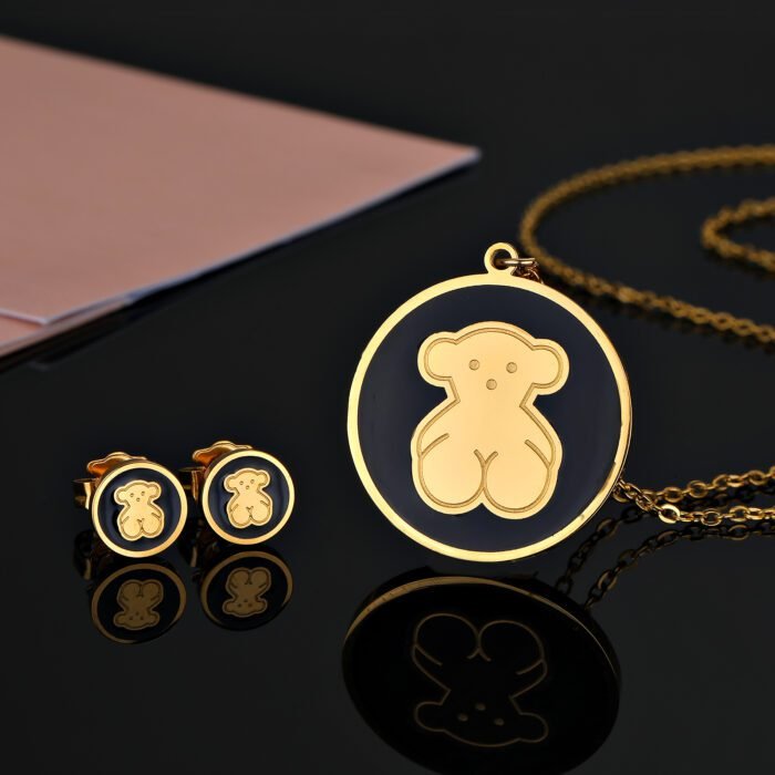 Be the first to review “TOUS Stainless steel disc black background teddy bear necklace earrings” Cancel reply