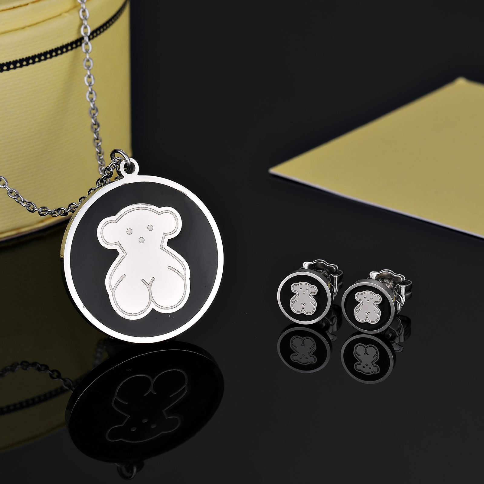TOUS, A jewelry brand known for its unique design and exquisite craftsmanship, once again presenting this stainless steel circular black background teddy bear necklace and earring set with infinite creativity and ultimate pursuit of details. This set cleverly combines classic and fashionable elements, presenting the iconic bear pattern of the brand in a brand new look, adding an irreplaceable personality to your daily outfit.