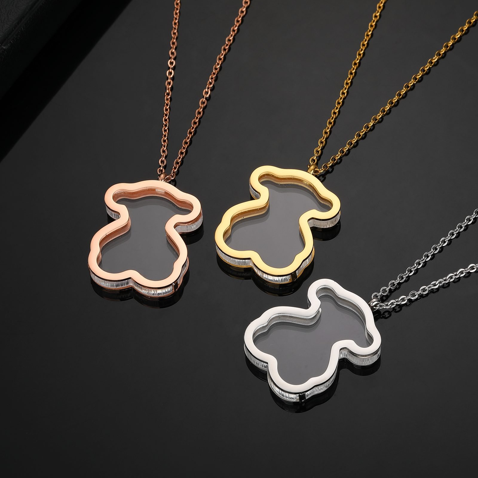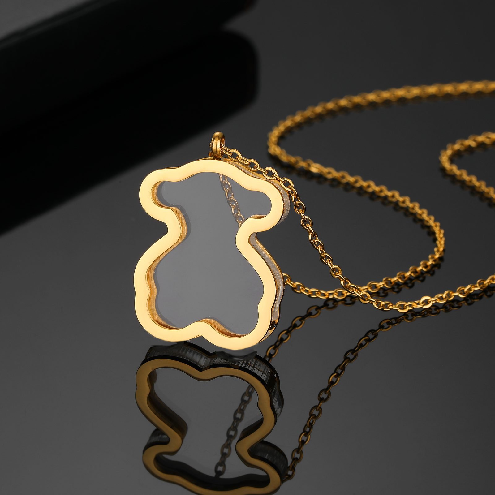 The sturdy frame of the pendant is made of high-quality stainless steel, which has been finely polished and polished to display extraordinary luster and texture. The material characteristics of stainless steel ensure the durability of the pendant, even if worn for a long time, it can maintain its original dazzling appearance. The core design of the pendant is a cute little bear, which is not only one of the iconic images of the TOUS brand, but also a messenger of warmth and happiness. The teddy bear is outlined with exquisite and delicate lines, with a vivid and lifelike form that is unforgettable at first glance. A transparent area has been cleverly placed on the chest of the teddy bear, which not only breaks the dull feeling of traditional pendants, but also gives the pendant a light and transparent visual effect. The transparent area is like a secret garden of bears, waiting for every wearer to discover and imagine. Every detail of the pendant has been carefully crafted, from the smooth lines of the frame to every expression of the teddy bear, revealing the TOUS brand’s ultimate pursuit of quality and design. The smooth treatment of the transparent area edge ensures comfort and safety when wearing. The chain part is also made of high-quality stainless steel, which complements the pendant and presents a harmonious and unified aesthetic overall. The length of the chain can be adjusted according to personal preferences, whether it is a high necked sweater or a low necked shirt, it can easily match different styles. When wearing, the pendant gently hangs on the chest, swaying gently with the swaying steps, adding a touch of agility and playfulness. This TOUS stainless steel frame teddy bear transparent center necklace pendant is suitable for daily wear, adding a touch of warmth and cuteness; It is also suitable as a finishing touch in special occasions, showcasing the wearer’s unique taste and personal charm. Whether it’s a joyful time with family and friends, or a quiet afternoon stroll alone, it can become an indispensable fashion companion for you.