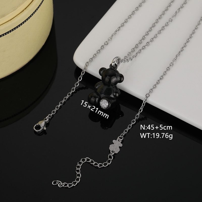 This TOUS stainless steel black gemstone Spanish bear accessory perfectly blends the brand’s most representative element – the cute Spanish bear – with modern and minimalist design. Made of high-quality stainless steel material, finely polished and polished, presenting an elegant and sturdy texture. The black surface treatment not only adds a sense of mystery, but also highlights the fashion and uniqueness of the jewelry. The Spanish bear, as the mascot of the TOUS brand, is deeply loved for its round and cute image. The Spanish bear in this accessory has smooth lines and full form, as if telling a warm story. And on its chest, there is a brilliant gem set, like the brightest star in the night sky, shining with charming light. Choosing high-quality stainless steel as the main material not only ensures the durability of the jewelry, but also makes it less susceptible to damage during daily wear. The black surface treatment adopts advanced electroplating technology to make the color more uniform and durable, and not easy to fade. The inlay process of gemstones is equally exquisite, firm and beautiful, without worrying about falling or damage. This TOUS stainless steel black gemstone Spanish bear accessory is not only a fashion accessory, but also an emotional expression. Its lightweight texture makes it almost imperceptible to the wearer; And its exquisite craftsmanship and unique design make it stand out among numerous accessories. Whether paired with casual or formal attire, it can showcase the wearer’s unique taste and fashion attitude. This TOUS accessory is suitable for wearing in various occasions. Whether it’s daily travel, dating gatherings, or important occasions, it can be your best partner. Whether giving it to oneself or as a gift to family and friends, it is a choice full of heart and taste. The length of this necklace is 45+5cm, and the pendant is 15+21mm.