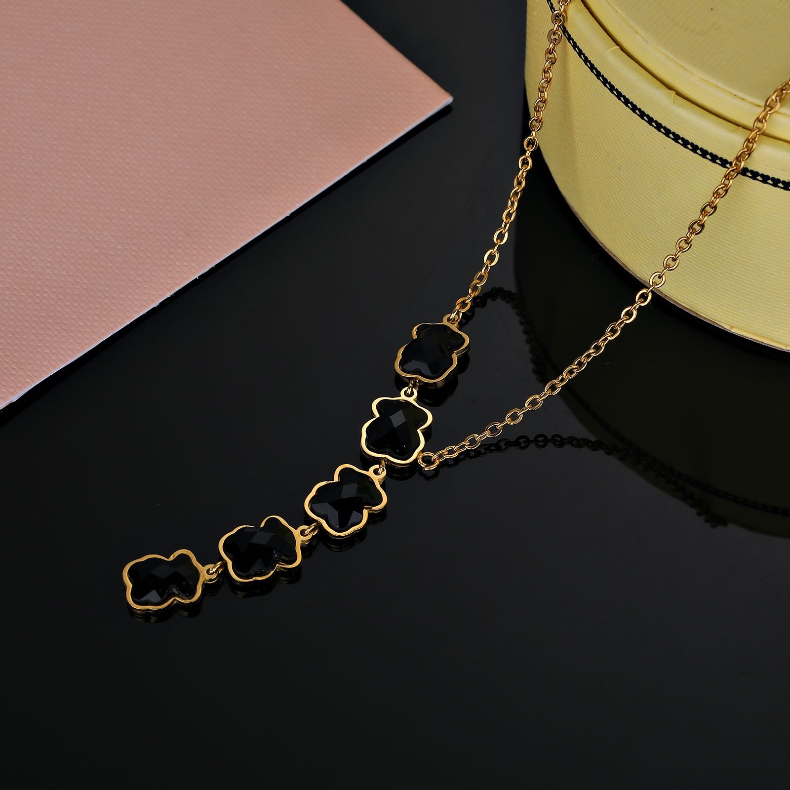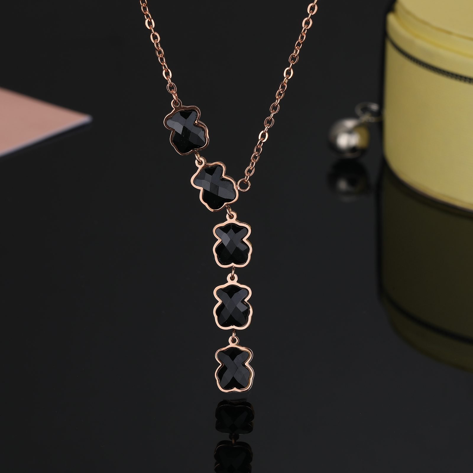 TOUS, This brand, full of Spanish style and romantic sentiment, once again creates a striking stainless steel black zircon five bear necklace pendant with excellent design inspiration and exquisite craftsmanship. This pendant is not only a reinterpretation of classic elements, but also an ultimate pursuit of fashion and personality, bringing the wearer a unique visual feast. The use of high-quality stainless steel as the main material ensures the durability and lightweight comfort of the pendant. The unique cold hardness of stainless steel and the deep luster of black zircon complement each other, presenting a low-key yet luxurious beauty. The black zircon is finely cut and embedded, shining with a mysterious and charming light, adding infinite charm to the overall design. The core design of the pendant consists of five adorable little bears. They stand or sit, or bow their heads in contemplation, or look up, every detail is full of liveliness and fun. The five little bears are closely interdependent, symbolizing unity, friendship, and protection, conveying a positive attitude towards life. Cleverly embedded with black zircon stones around or in specific areas of the five little bears. These zircons are like the brightest stars in the night sky, not only enhancing the grade and texture of the pendant, but also making the overall design emit a charming glow under the illumination of light, making it unforgettable. TOUS, with its strict control over quality and infinite pursuit of design, ensures that every detail of this pendant is perfect. From the polishing process of stainless steel to the inlay technique of black zircon, all demonstrate TOUS brand’s respect and inheritance of exquisite craftsmanship. This TOUS stainless steel black zircon five bear necklace pendant is suitable for daily wear to showcase personal charm, as well as adding luster to special occasions. Whether it’s leisure time, romantic dates, business events, or dinner celebrations, it can make the wearer the center of attention. Choosing the TOUS stainless steel black zircon five bear necklace pendant is a choice of longing and pursuit for a better life. Let it accompany you through every important moment, witnessing your growth and transformation. TOUS, Light up life with love and creativity, and shine with your unique brilliance.