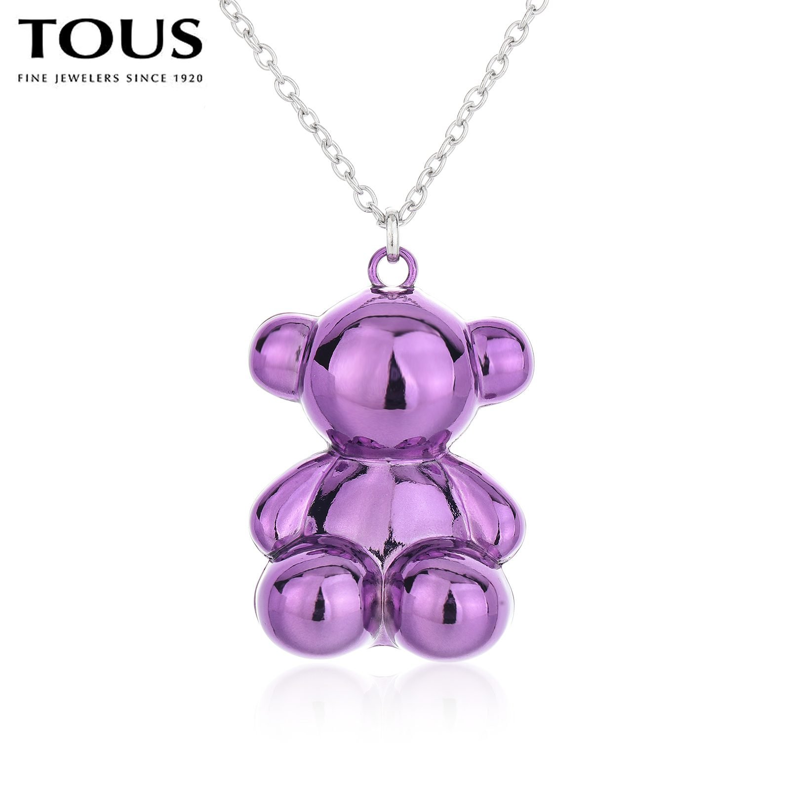 This TOUS accessory is mainly made of high-quality stainless steel, ensuring its durability and lightweight wearing experience. After a special surface treatment process, the stainless steel surface presents a charming bright purple tone, which is both gorgeous and elegant, as if emitting a romantic purple atmosphere. This bright purple tone is both fashionable and eye-catching, which can easily attract people’s attention. As the mascot of the TOUS brand, the image of the Spanish bear is vividly displayed in this accessory. The round and cute shape and smooth lines highlight the liveliness and agility of the Spanish bear. The combination of bright purple stainless steel material and the image of a Spanish bear makes the entire accessory more dazzling and fashionable. On the chest or feet of the Spanish bear, there is a brilliant gemstone set. This gemstone has been carefully selected and polished, emitting a charming light that contrasts sharply with the bright purple background, highlighting the nobility and delicacy of the jewelry. The embellishment of gemstones not only adds a sense of layering to the jewelry, but also makes the entire jewelry more dazzling and eye-catching. TOUS stainless steel material bright purple gemstone Spanish bear jewelry is lightweight and exquisite, whether worn on the neck or wrist, it can add a unique charm to your appearance. The bright purple color tone is both mysterious and noble, bringing a unique confidence and elegance to the wearer. This accessory is suitable for pairing with various styles of clothing, whether it is casual or formal, it can showcase the wearer’s unique taste and fashion attitude. The length of this necklace is 60+5cm, and the pendant is 38x52mm