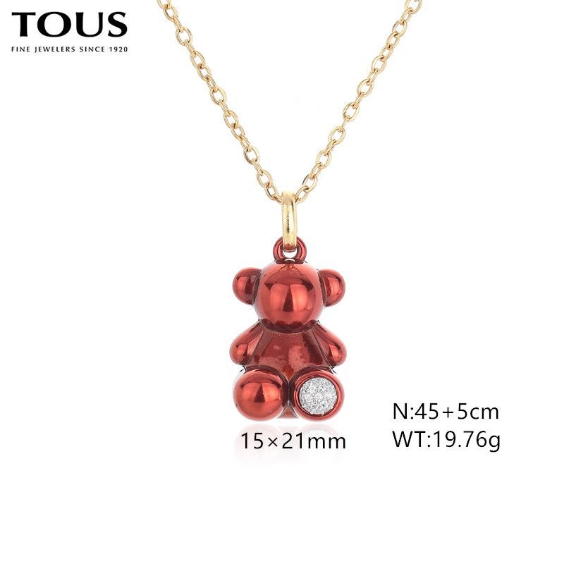 TOUS jewelry uses high-quality stainless steel as the main material, and through exquisite craftsmanship, the surface presents an ultimate luster. The sturdy and durable properties of stainless steel ensure the durability and stability of the jewelry, while also providing a comfortable and burden free wearing experience for the wearer. The most eye-catching aspect is the bright red tone of the jewelry. This unique red color is as passionate and unrestrained as flames, injecting vitality and passion into jewelry. After special treatment, the stainless steel surface presents a bright red luster, making the entire jewelry more fashionable and eye-catching. As the mascot of the TOUS brand, the image of the Spanish bear is perfectly displayed in this accessory. The round and cute shape, with smooth and vivid lines, seems ready to share happy moments with the wearer at any time. The bright red Spanish bear is even more unique, inheriting the brand’s classic elements and injecting a new fashionable atmosphere. In front of the feet of the Spanish bear, there is a brilliant gem set. This gemstone has been carefully selected and polished, shimmering with charming light, forming a sharp contrast with the bright red Spanish bear, adding a touch of brightness to the entire jewelry. The embellishment of gemstones not only enhances the texture of the jewelry, but also makes the entire design more noble and exquisite. TOUS stainless steel bright red gemstone Spanish bear jewelry is lightweight and exquisite, making it a highlight in the design whether worn on the neck or wrist. The bright red appearance emits a charming luster in the sunlight, making people unable to resist taking a few more glances. Whether it’s for daily wear or attending important occasions, this accessory can add a touch of fashion and personality to your look. The length of this necklace is 45+5cm, and the pendant is 15x21mm.