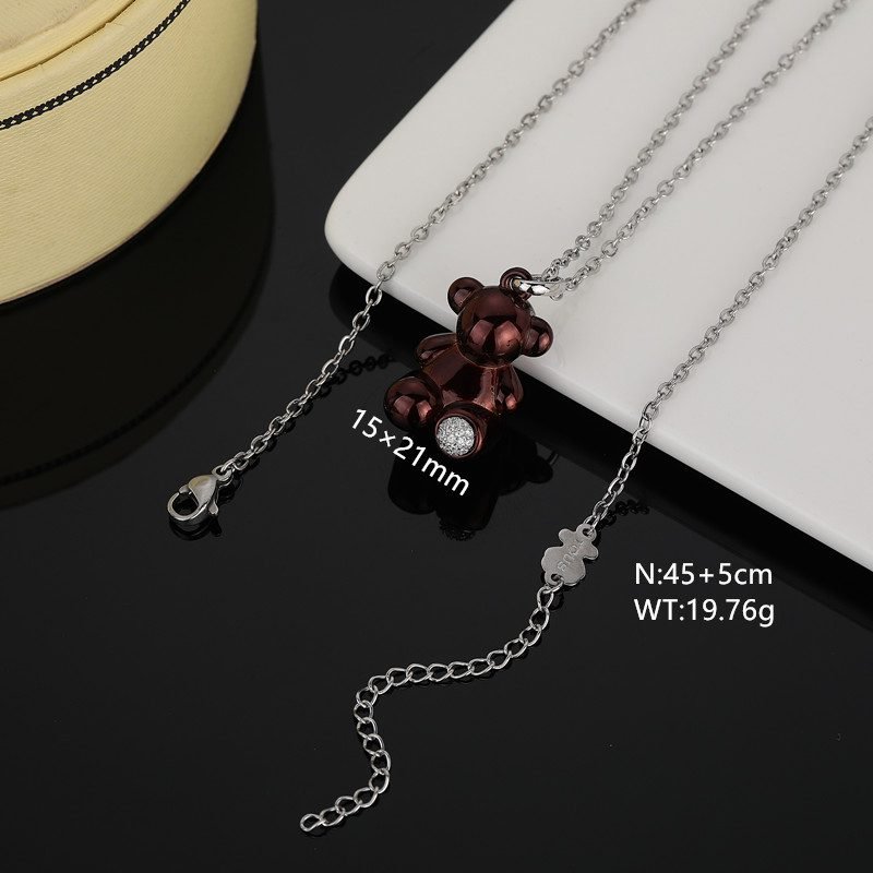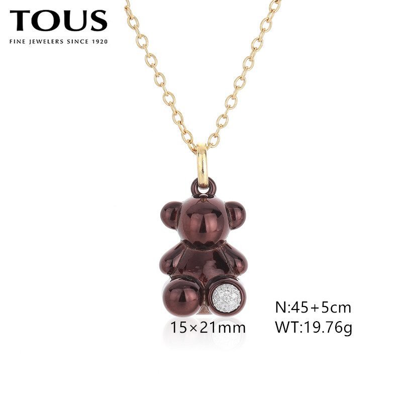 This accessory uses high-quality stainless steel as the main material, and through exquisite craftsmanship, the surface presents a deep and low-key dark brown color. This dark brown color tone not only exudes a natural and retro atmosphere, but also gives jewelry a unique sense of stability. The sturdy and durable properties of stainless steel ensure the long-term use of jewelry, so you don’t have to worry about its quality. Among the many classic elements of TOUS, the image of the Spanish bear has always been highly anticipated. This dark brown gemstone Spanish bear accessory cleverly incorporates this classic element, showcasing the liveliness and agility of the Spanish bear with its round and cute shape and smooth lines. The dark brown color tone adds a sense of stability and grandeur to the jewelry, making the entire design more unique and eye-catching. In front of the feet of the Spanish bear, there is a brilliant gem set. This gemstone has been carefully selected and polished, forming a sharp contrast with the dark brown Spanish bear. The brilliant radiance of the gemstone and the steady dark brown background complement each other, further highlighting the nobility and delicacy of the jewelry. TOUS stainless steel material dark brown gemstone Spanish bear jewelry is lightweight and exquisite, whether worn on the neck or wrist, it can become a highlight in your style. The dark brown appearance emits a charming luster in the sunlight, adding a unique charm to your overall design. Whether paired with casual or formal attire, this accessory can be easily mastered, showcasing your unique taste and personality. The length of this necklace is 45+5cm, and the pendant is 15x21mm