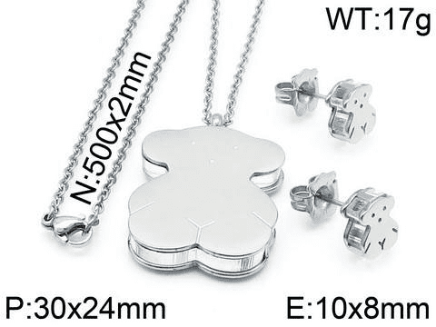 Double layer bear design: The pendant and earrings of the necklace are both designed with a double layer bear, with clear contours and smooth lines on the outer layer of the bear, showing a cute and playful side; And the inner layer is cleverly embedded with transparent zircon, serving as a interlayer, adding a mysterious and dreamy color to the little bear.