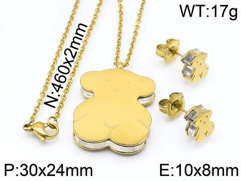 TOUS, This brand, known for its craftsmanship and creativity, once again leads the trend with exquisite craftsmanship and unique design, bringing you this stainless steel double-layer bear transparent zircon inlaid necklace and earring set. This set perfectly blends the toughness of stainless steel with the purity of transparent zircon, and the design of the double-layer teddy bear is even more innovative, adding a fresh and refined atmosphere to your fashionable look.