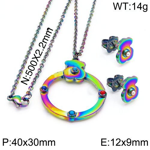 Whether it’s daily travel, friend gatherings, romantic dates, or workplace work, this TOUS stainless steel four-color zircon ring teddy bear necklace&earring set can become an indispensable fashion accessory for you, allowing you to confidently shine and exude unique charm in any occasion. The length of the necklace is 50cmx2, and the pendant is 37x31mm.