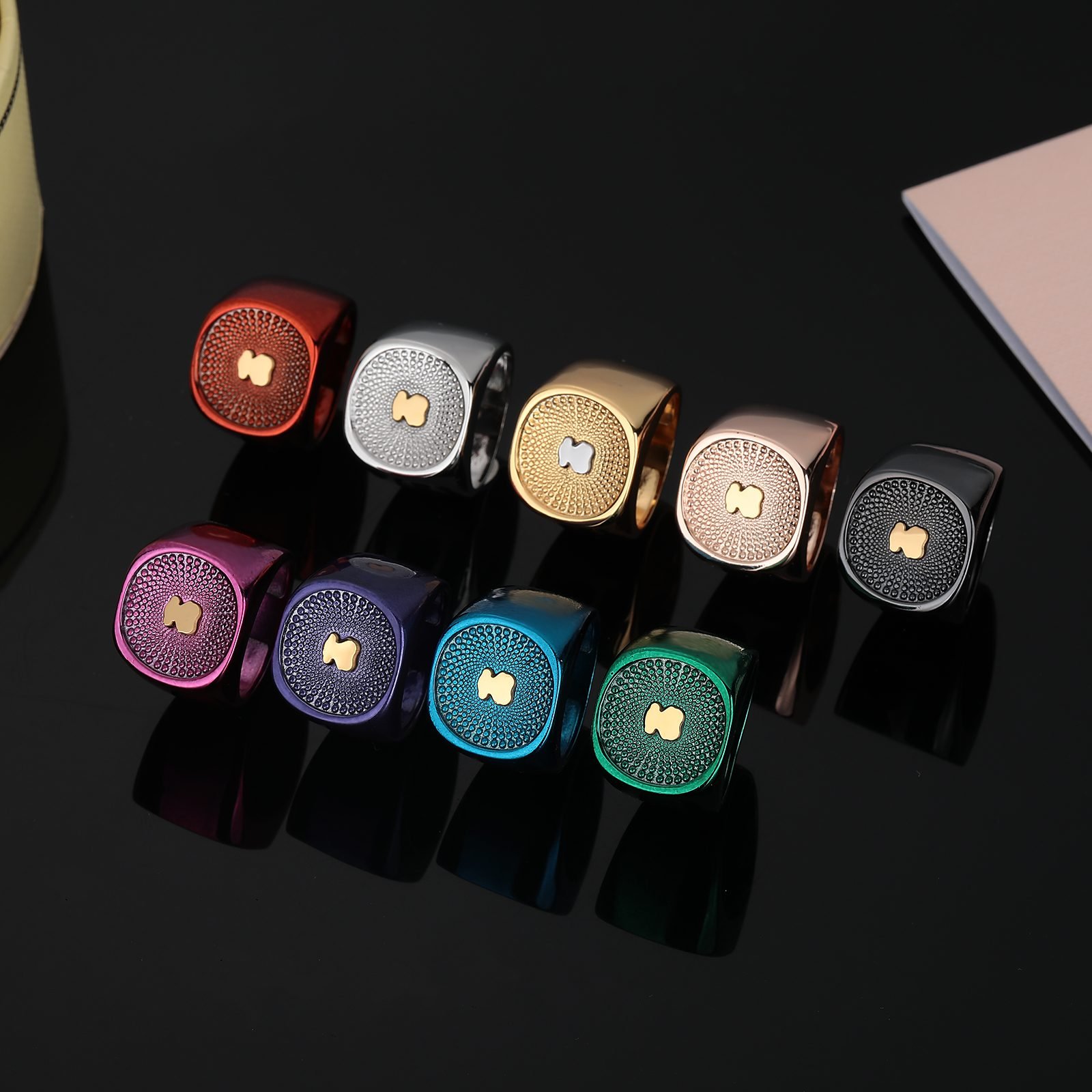 TOUS, A jewelry brand that cleverly integrates exquisite craftsmanship and creative design has once again launched a remarkable new product – TOUS stainless steel material golden bear disc dot diffusion primary color ring. This ring features a gold teddy bear as its core design element, combined with a unique circular dot diffusion pattern and multiple color options, adding an irresistible charm to your fingertips.