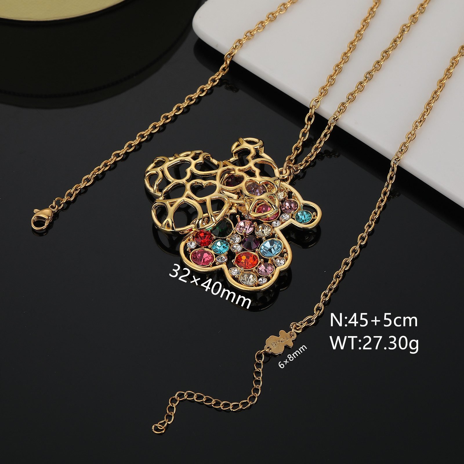 This TOUS stainless steel Spanish bear double frame heart-shaped frame colored zircon inlaid necklace pendant has become a darling of the fashion industry with its unique design style and colorful visual effects. Whether paired with simple casual attire or elegant evening gowns, they can showcase the wearer’s unique fashion taste and romantic temperament. It is a fashionable item for daily wear and also the finishing touch for attending special occasions.
