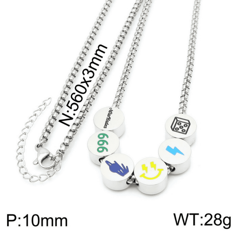 The pendant part of the necklace adopts a circular design, symbolizing completeness and harmony. The surface of the pendant is meticulously carved with various patterns, which are inspired by cultures and traditions from around the world and outline a unique beauty through simple and creative lines. Each pattern is full of storytelling, as if telling different histories and cultures. The necklace is made of high-quality stainless steel material, which has extremely high corrosion resistance and wear resistance, and can maintain long-lasting luster and texture in various environments. At the same time, stainless steel material also has certain anti allergic properties, suitable for people of various skin types to wear.