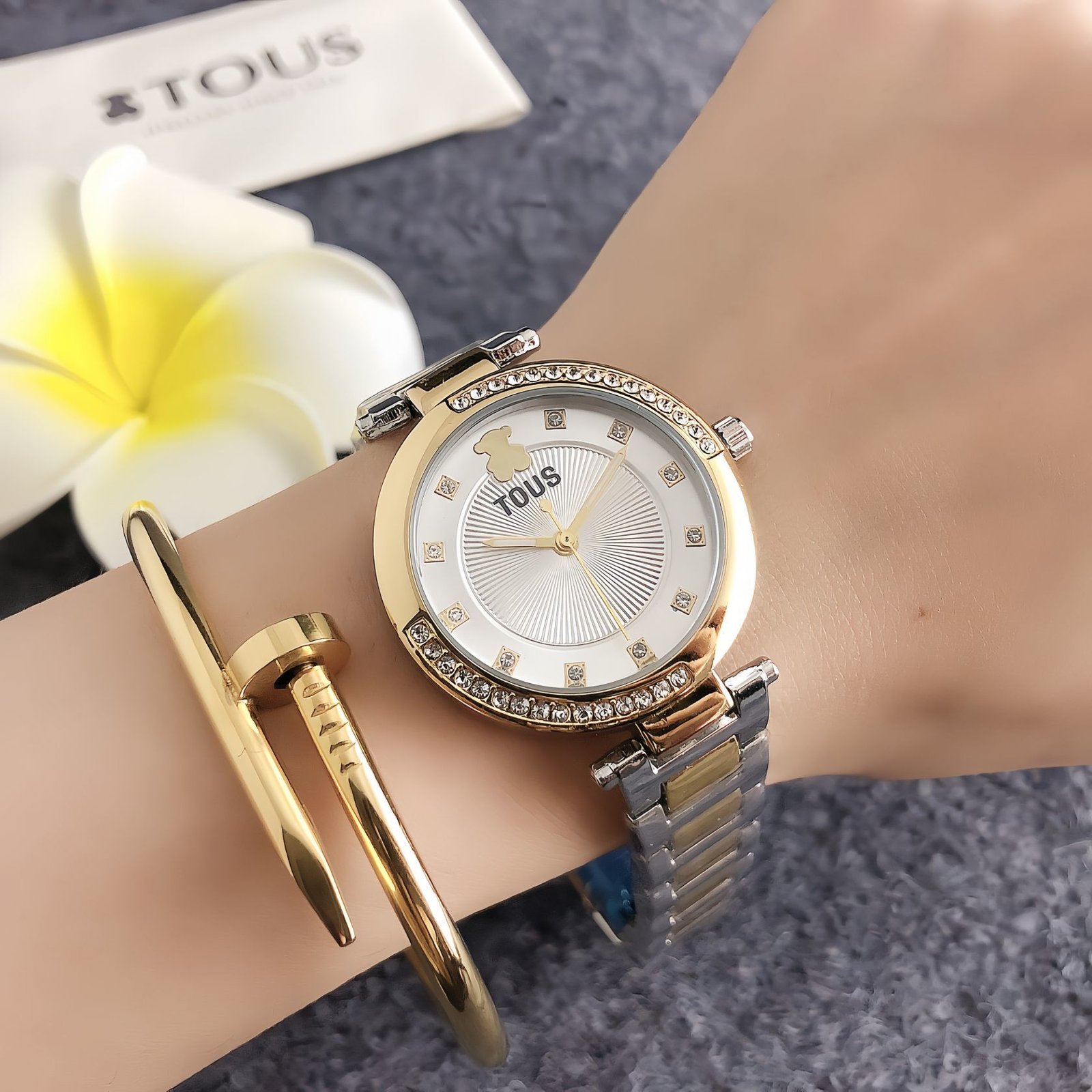 Tous T67XX series watches blend playful elegance with diverse design details. Featuring round dials, the signature Tous bear emblem, and optional crystal accents, they come in chic tones like two-tone, silver, gold, and rose gold, with various dial color options. Embodying Tous’ legacy of combining cuteness and sophistication, these timepieces offer a range of styles to suit any taste, adding a touch of whimsical luxury to daily outfits or special occasions, making them perfect for fashion lovers seeking distinctive and stylish accessories.