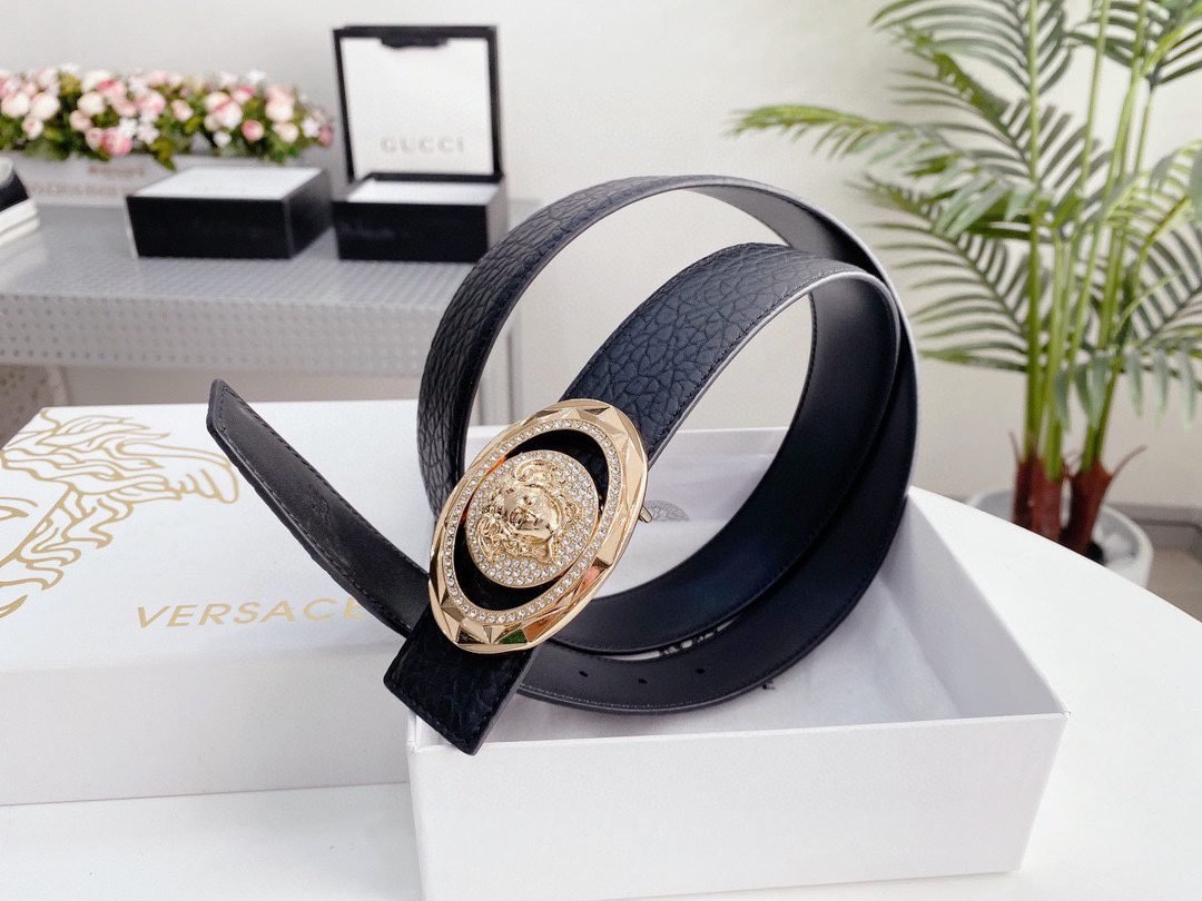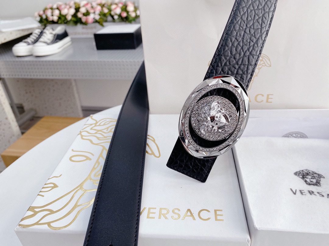 Versace Classic Circular Buckle Black Belt Simple, Atmospheric, Exquisite and Elegant