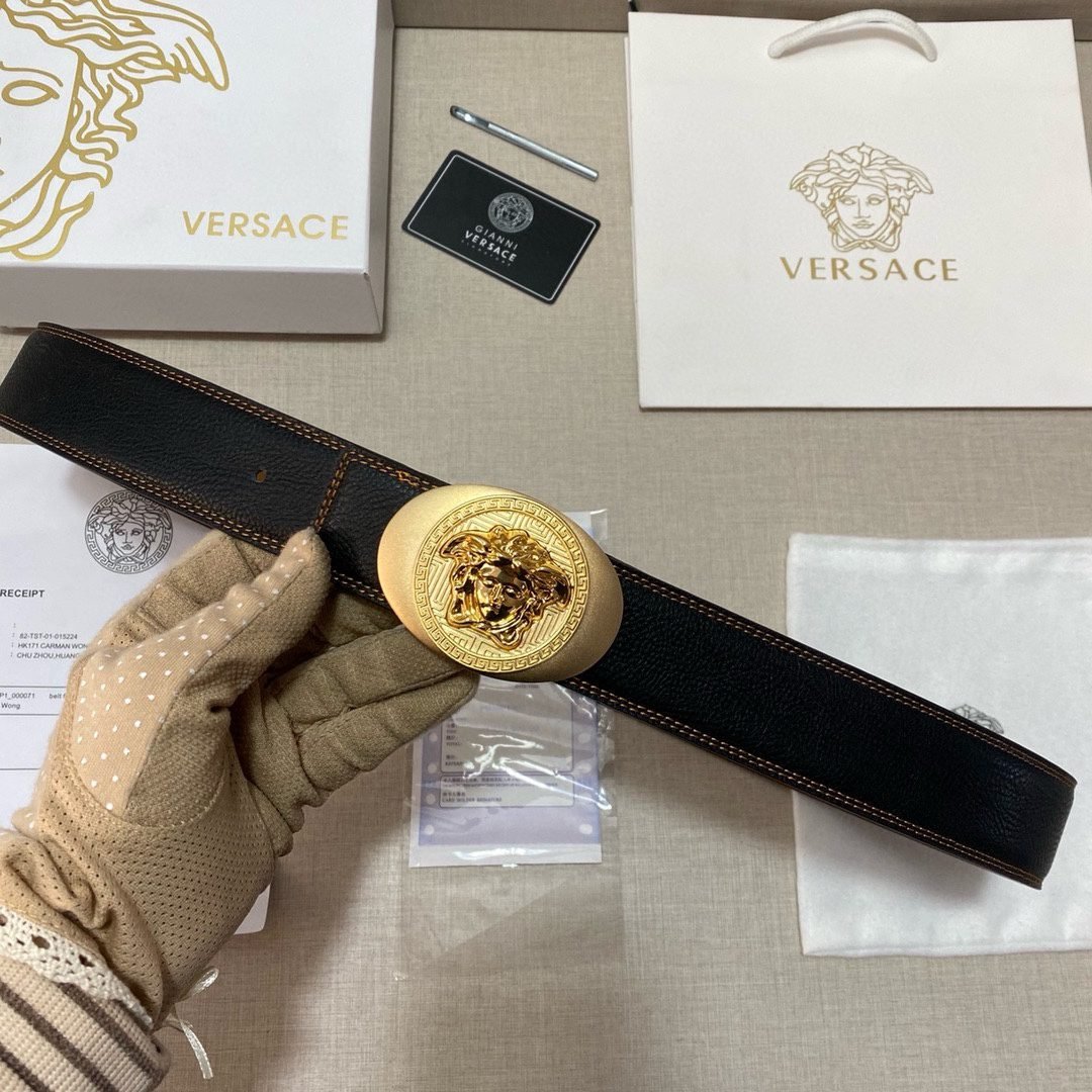 Versace Classic Circular Buckle Black Belt Simple, Fashionable, Noble, and Elegant