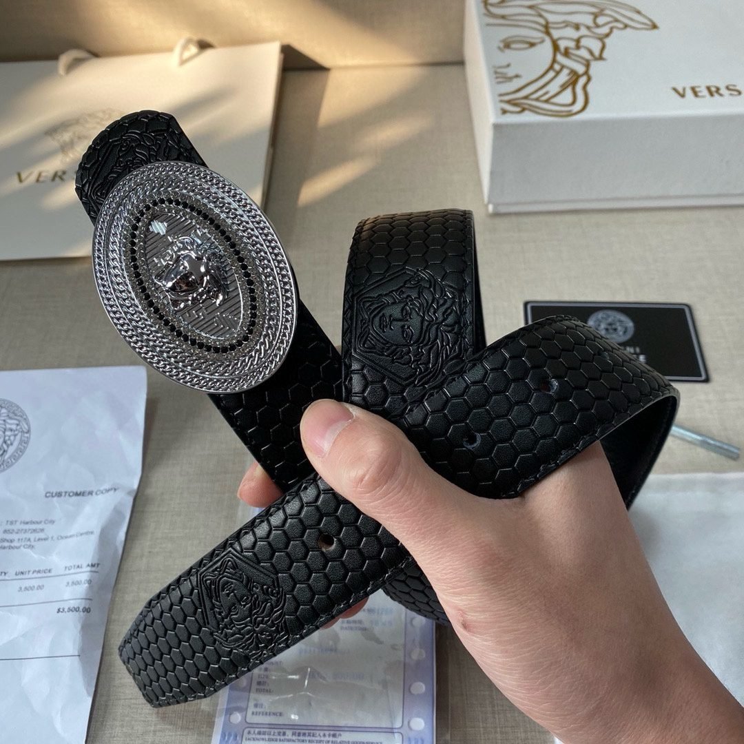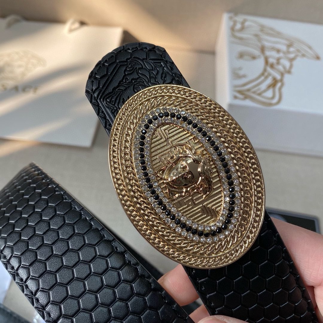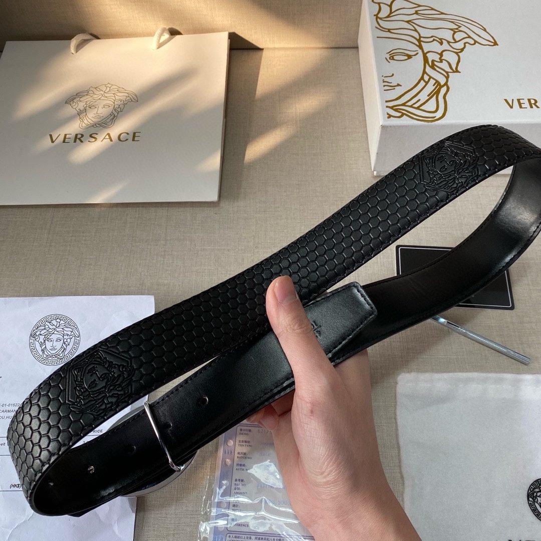 Home Belt VERSACE Belt Versace Classic Circular Buckle Black Plaid Belt Classic Fashion Noble and Elegant