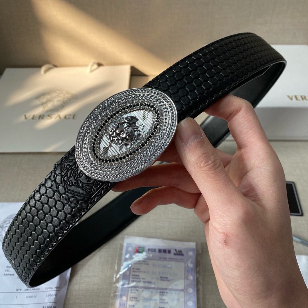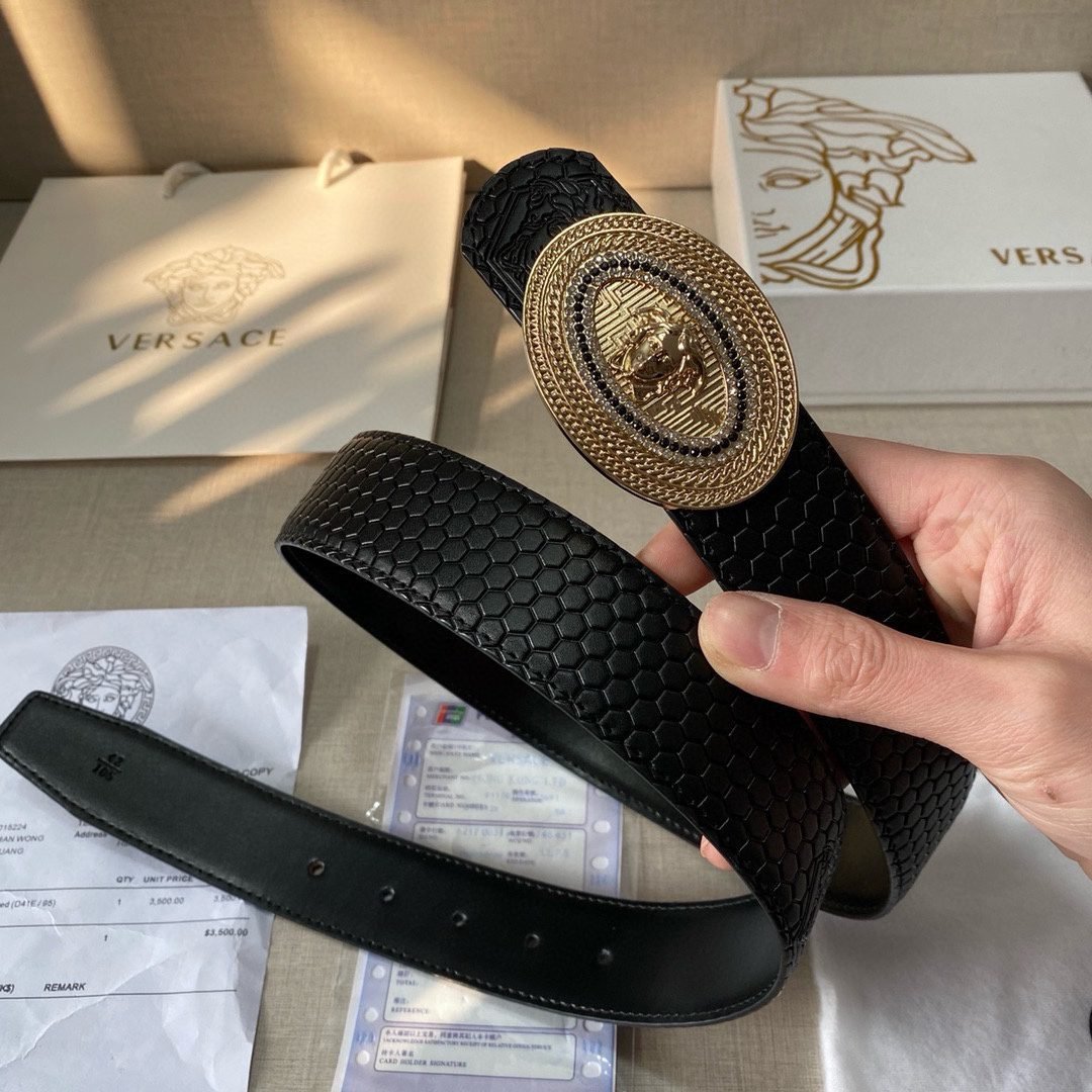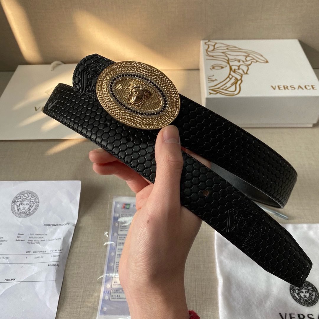 Home Belt VERSACE Belt Versace Classic Circular Buckle Black Plaid Belt Classic Fashion Noble and Elegant