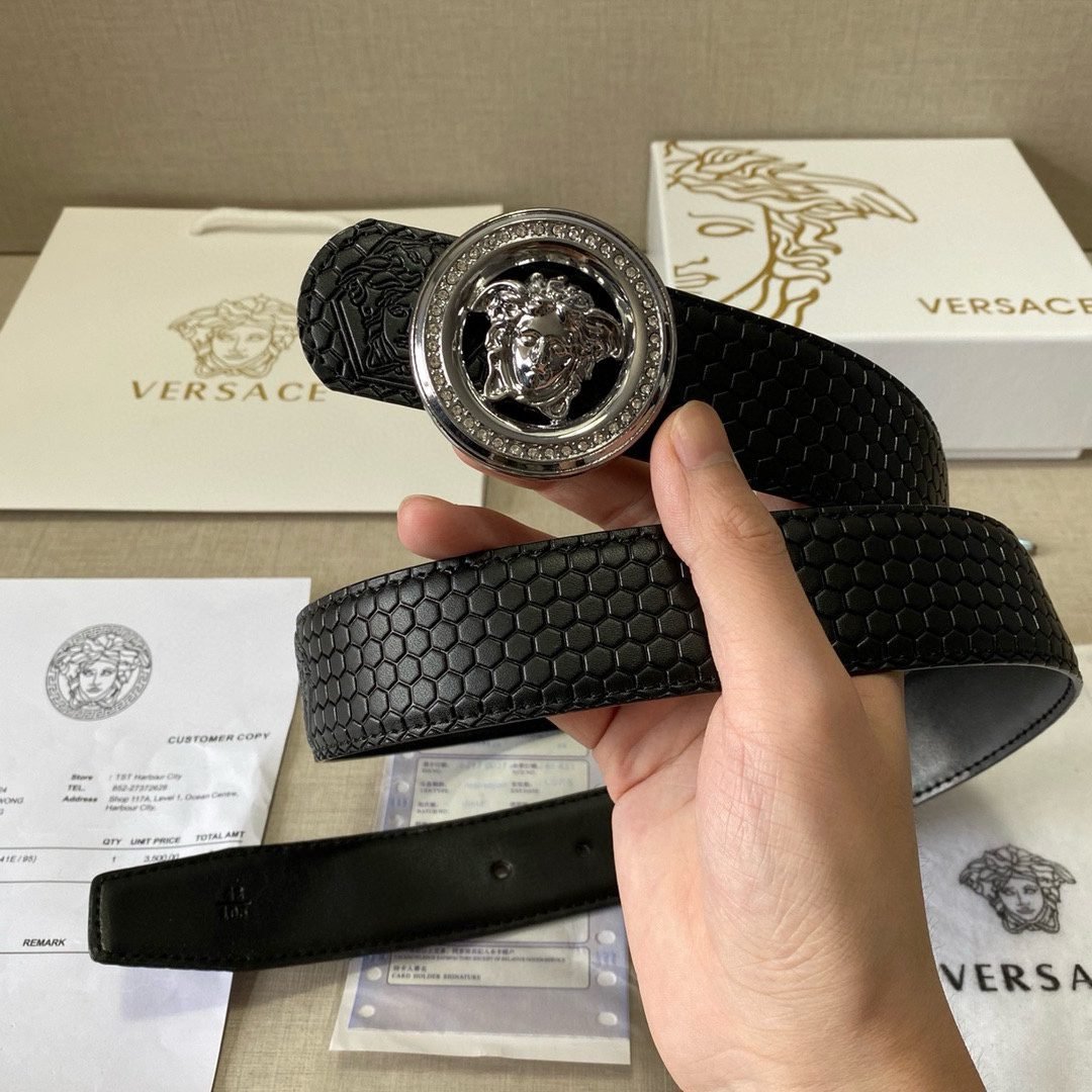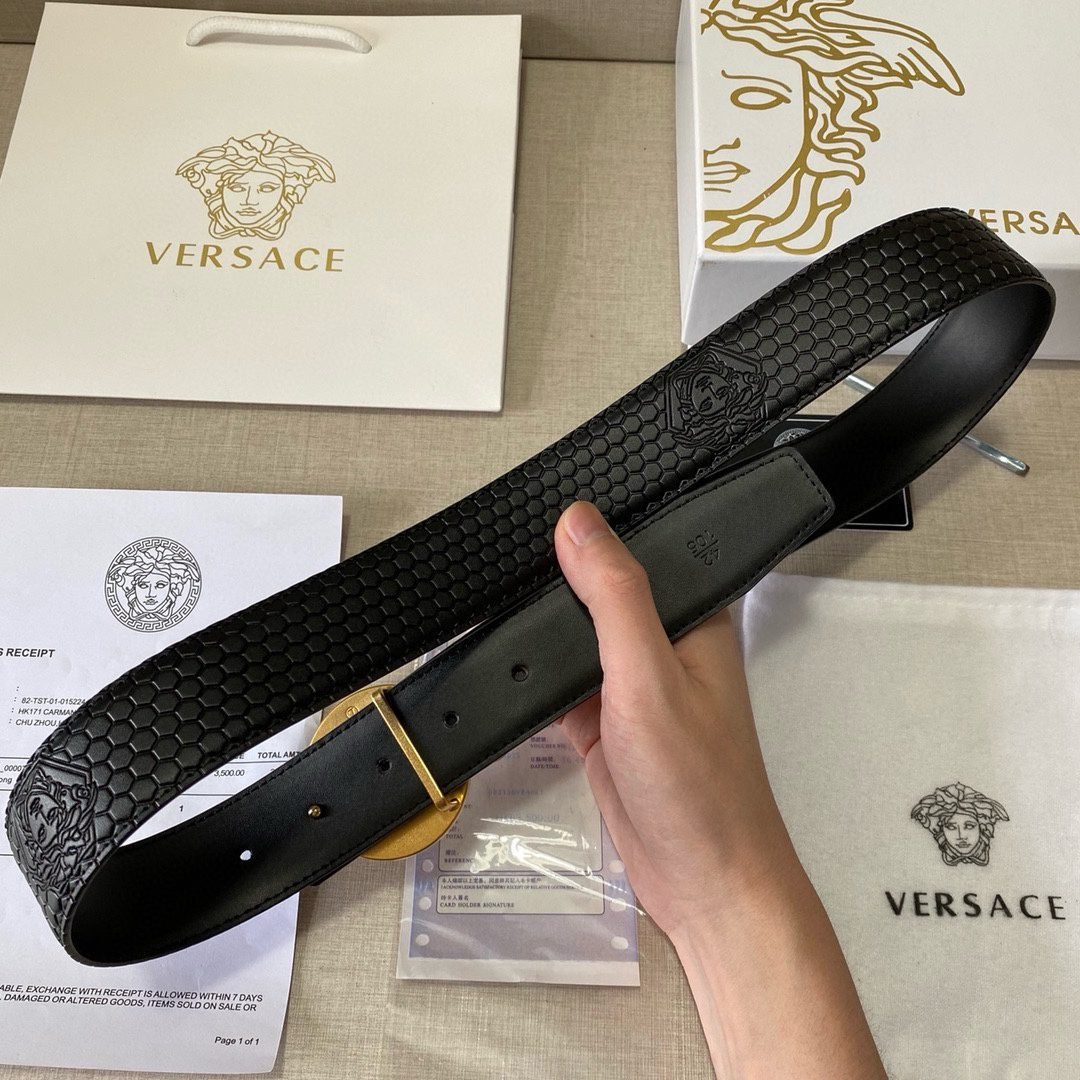 Home Belt VERSACE Belt Versace Classic Circular Buckle Black Plaid Belt Simple Fashion Noble Luxury