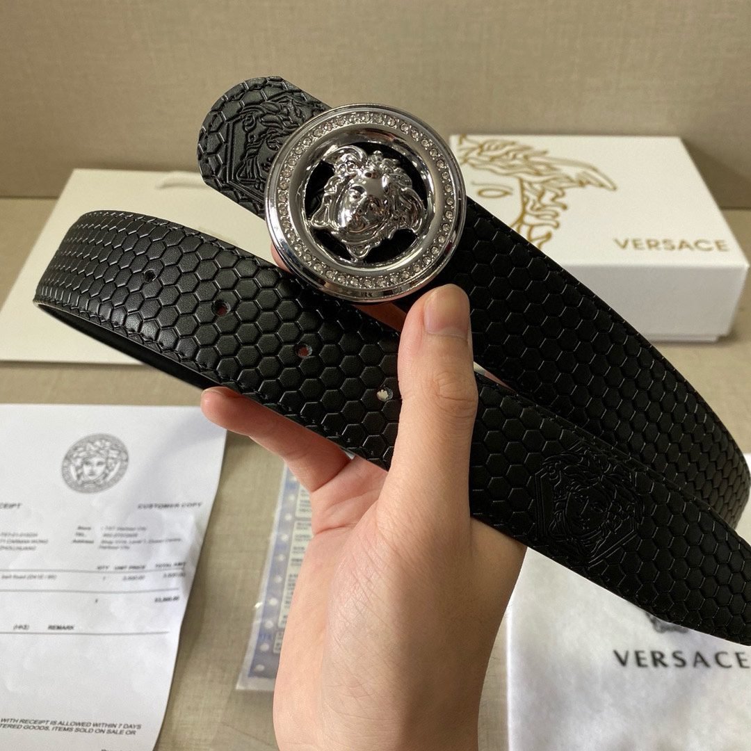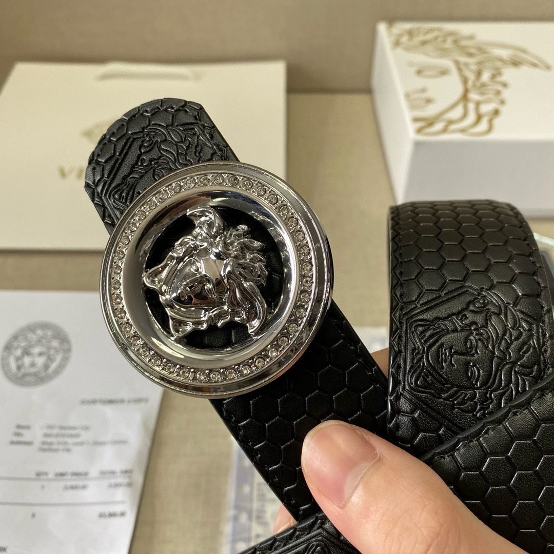 Versace Classic Circular Buckle Black Texture Belt Simple, Fashionable, Noble, Luxury