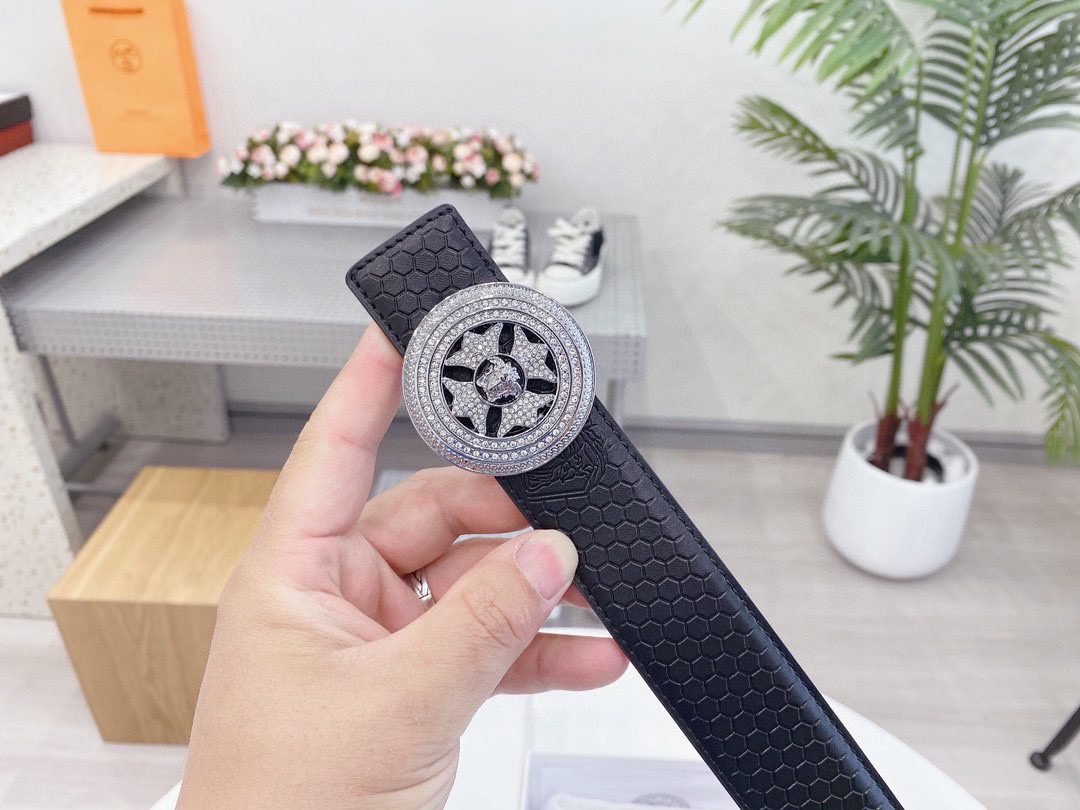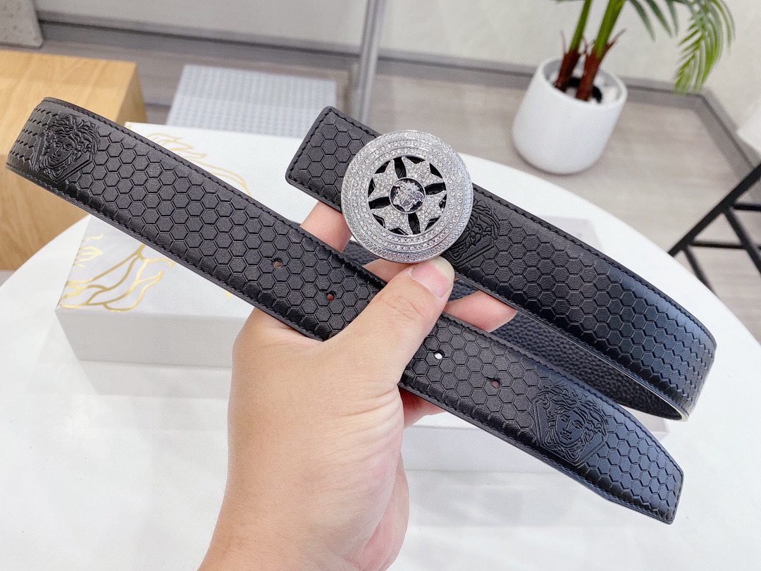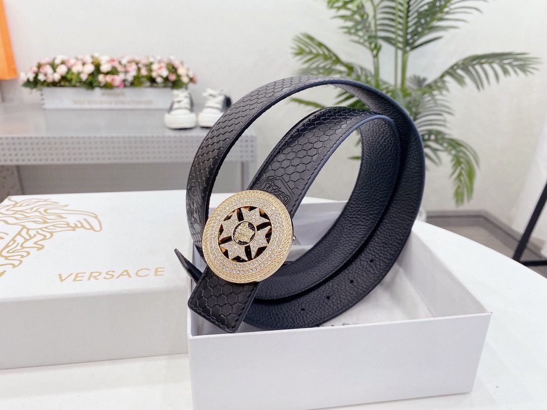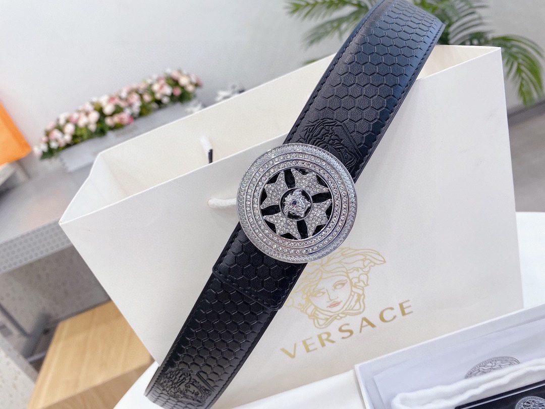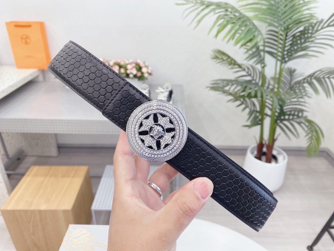 Versace Classic Circular Buckle Black Texture Belt Classic Fashion Exquisite Elegance