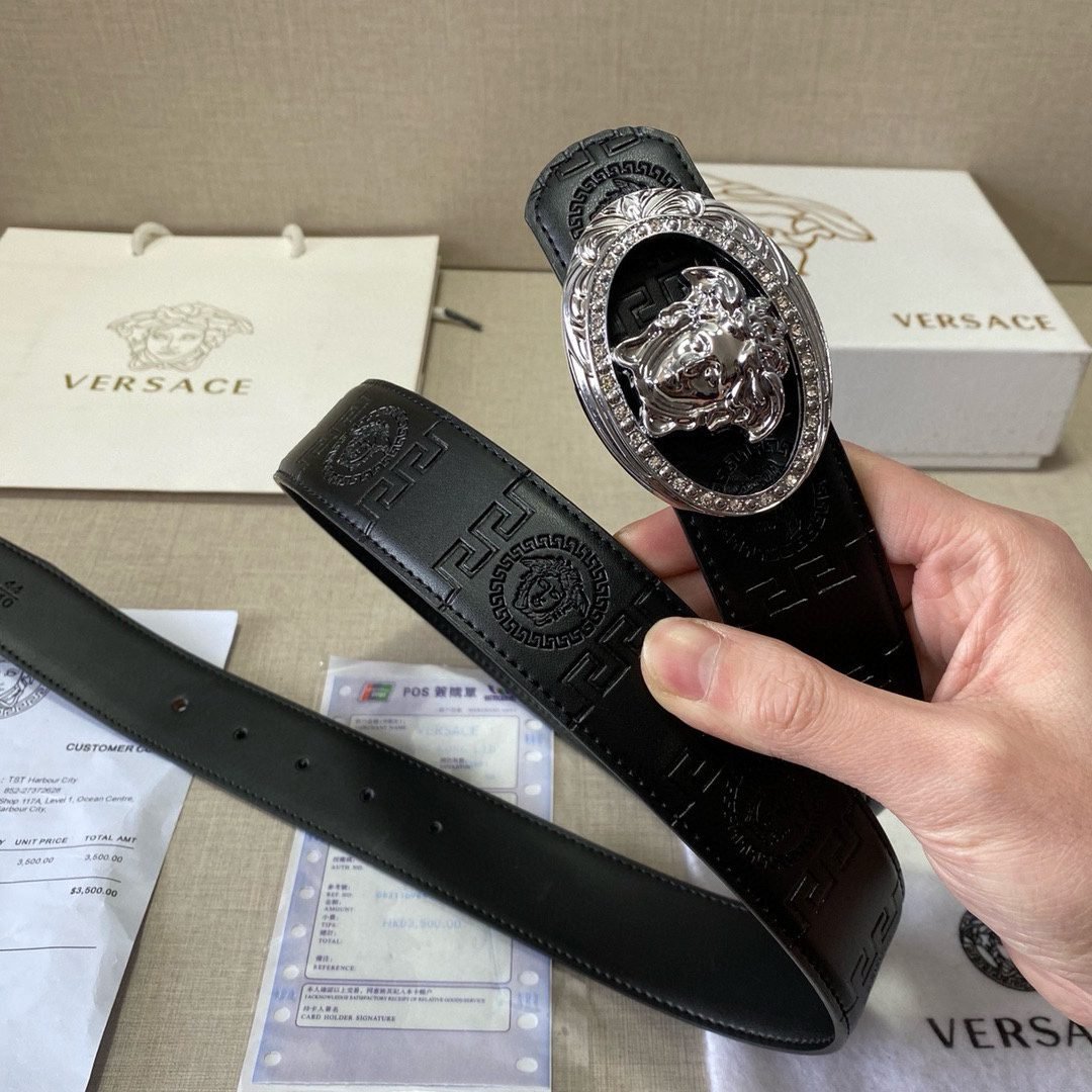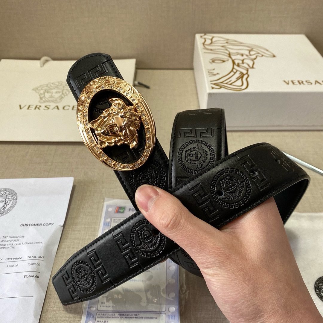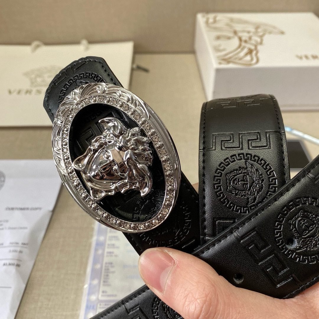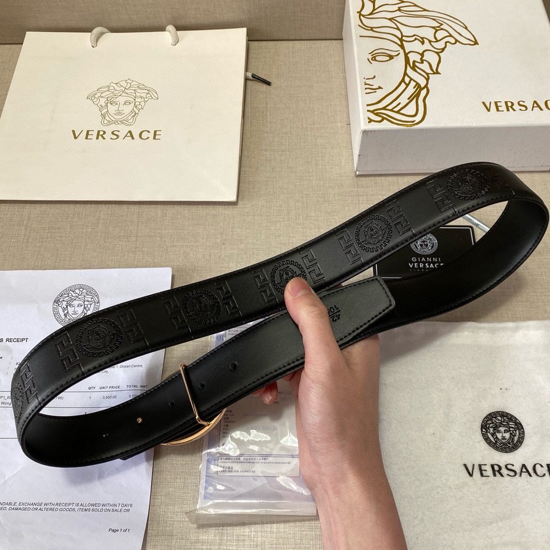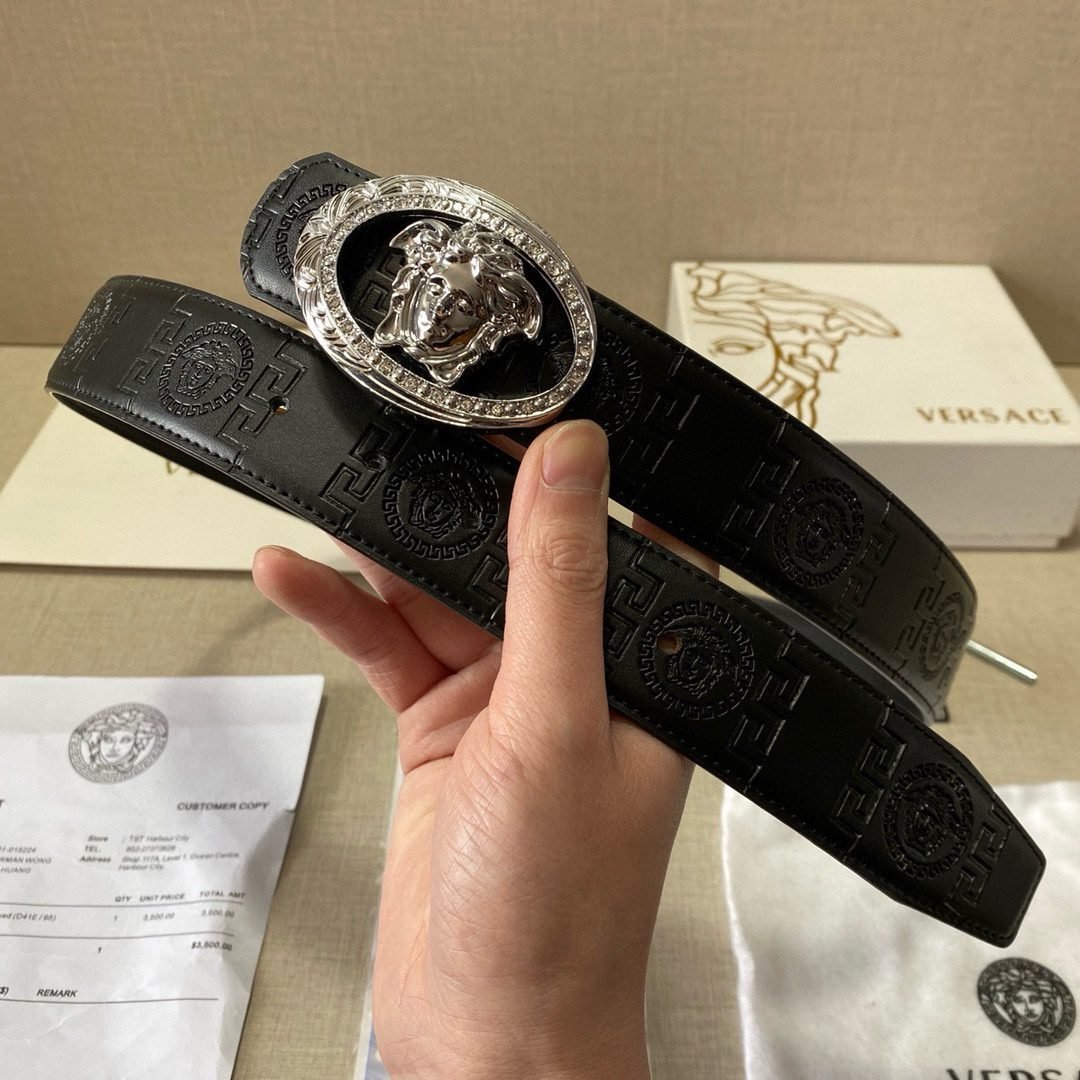 Versace Classic Circular Buckle Black Texture Belt Classic Fashion Noble and Elegant