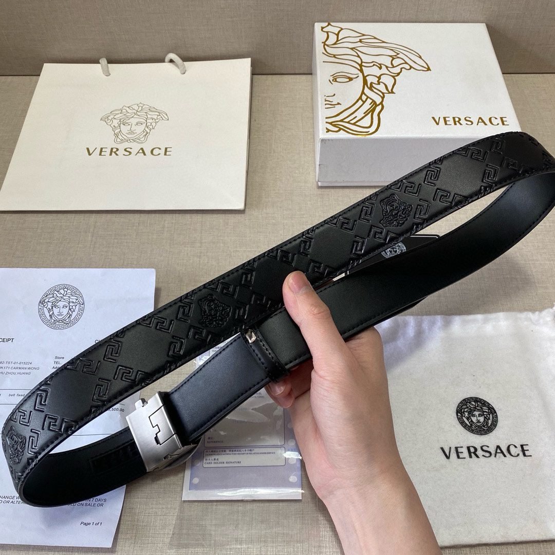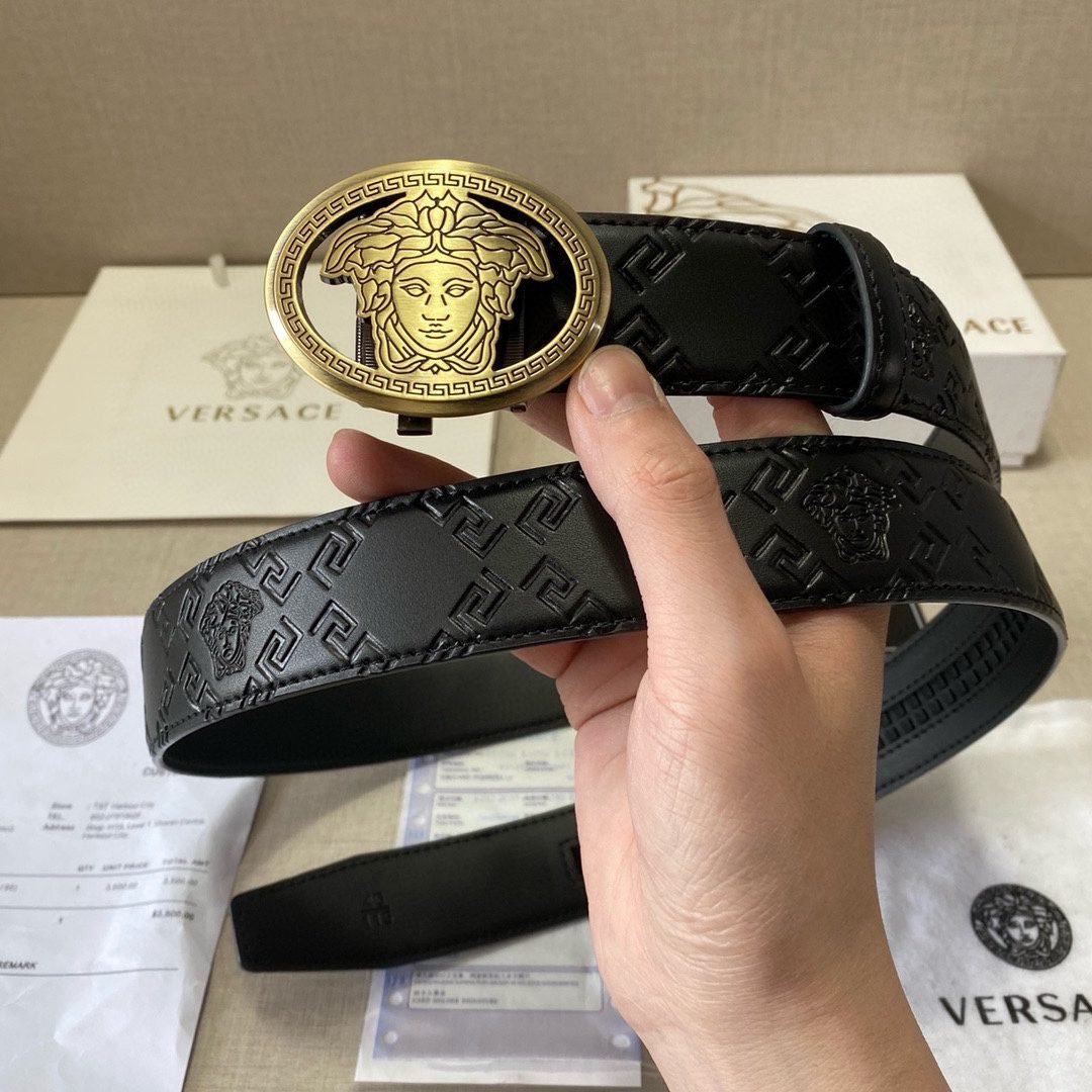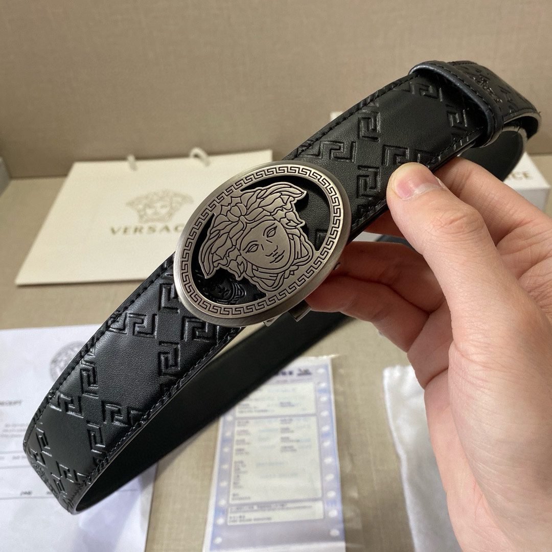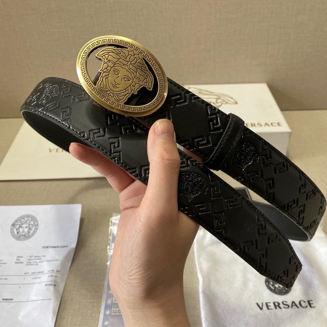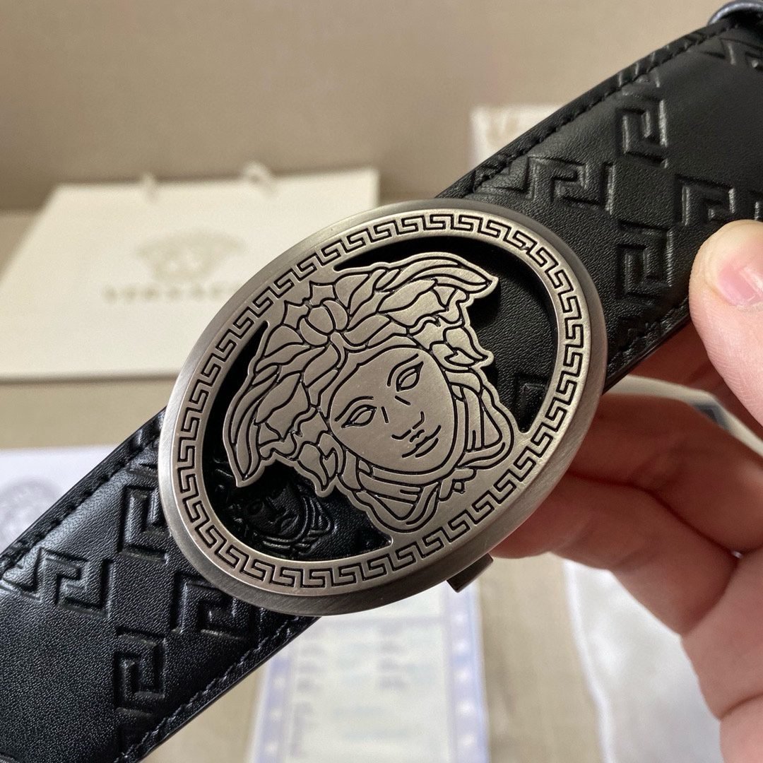 Versace Classic Circular Buckle Black Texture Belt Simple and Elegant Classic Fashion