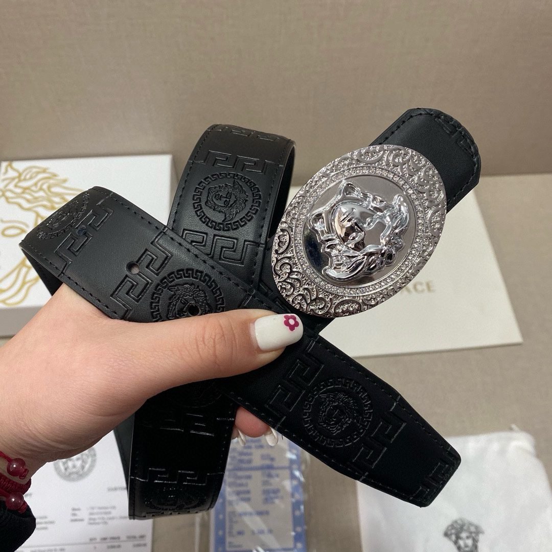 Versace Classic Circular Buckle Black Texture Belt Simple and Elegant Classic Fashion
