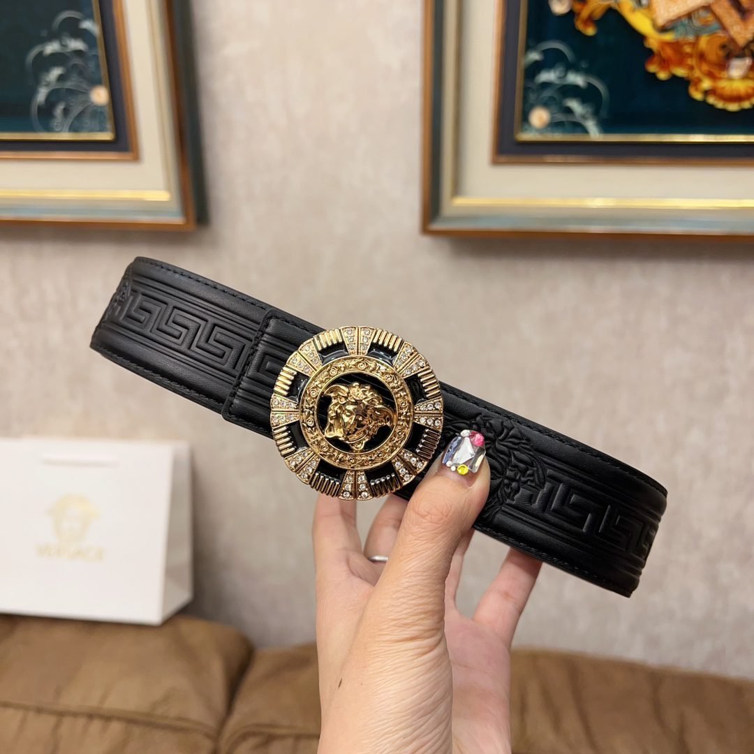 Home Belt VERSACE Belt Versace Classic Circular Buckle Black Texture Belt Simple, Fashionable, Noble, and Elegant