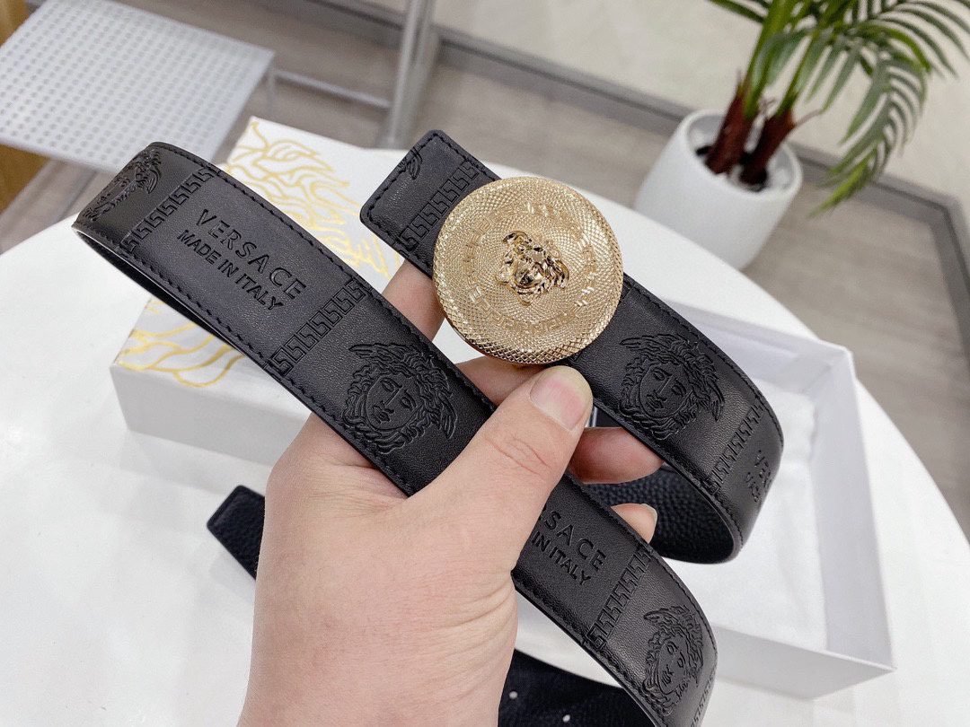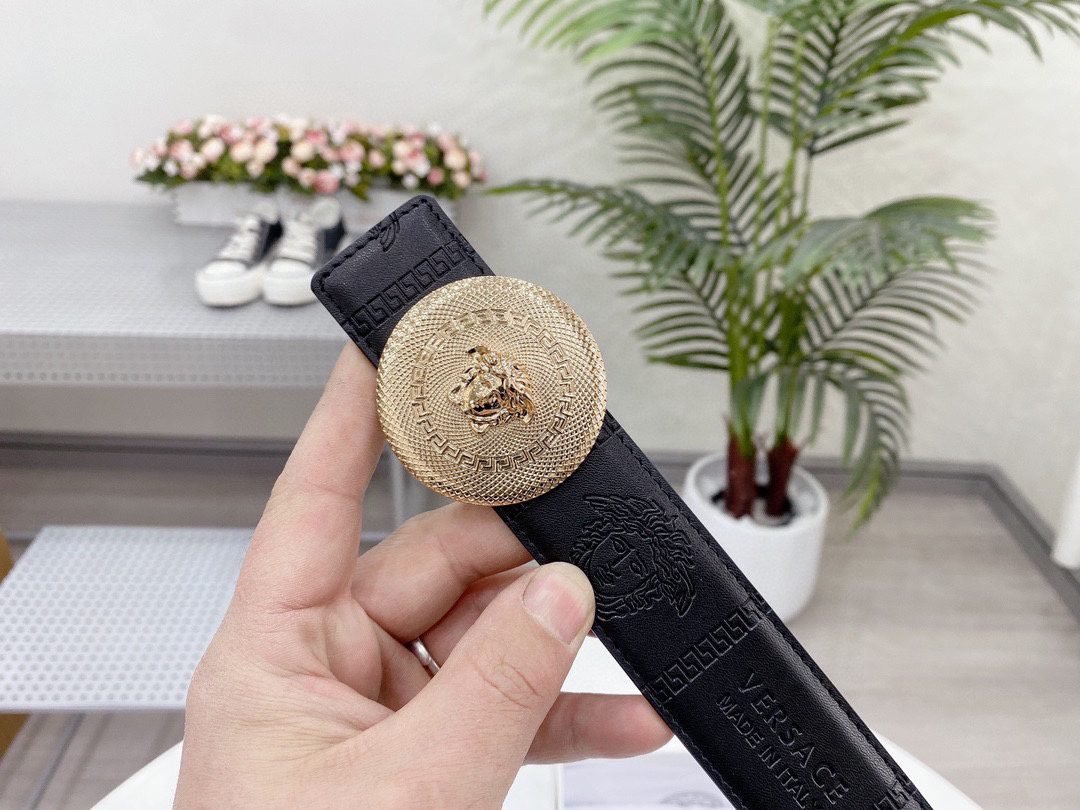 Home Belt VERSACE Belt Versace Classic Circular Buckle Black Texture Belt Simple, Fashionable, Noble, and Elegant