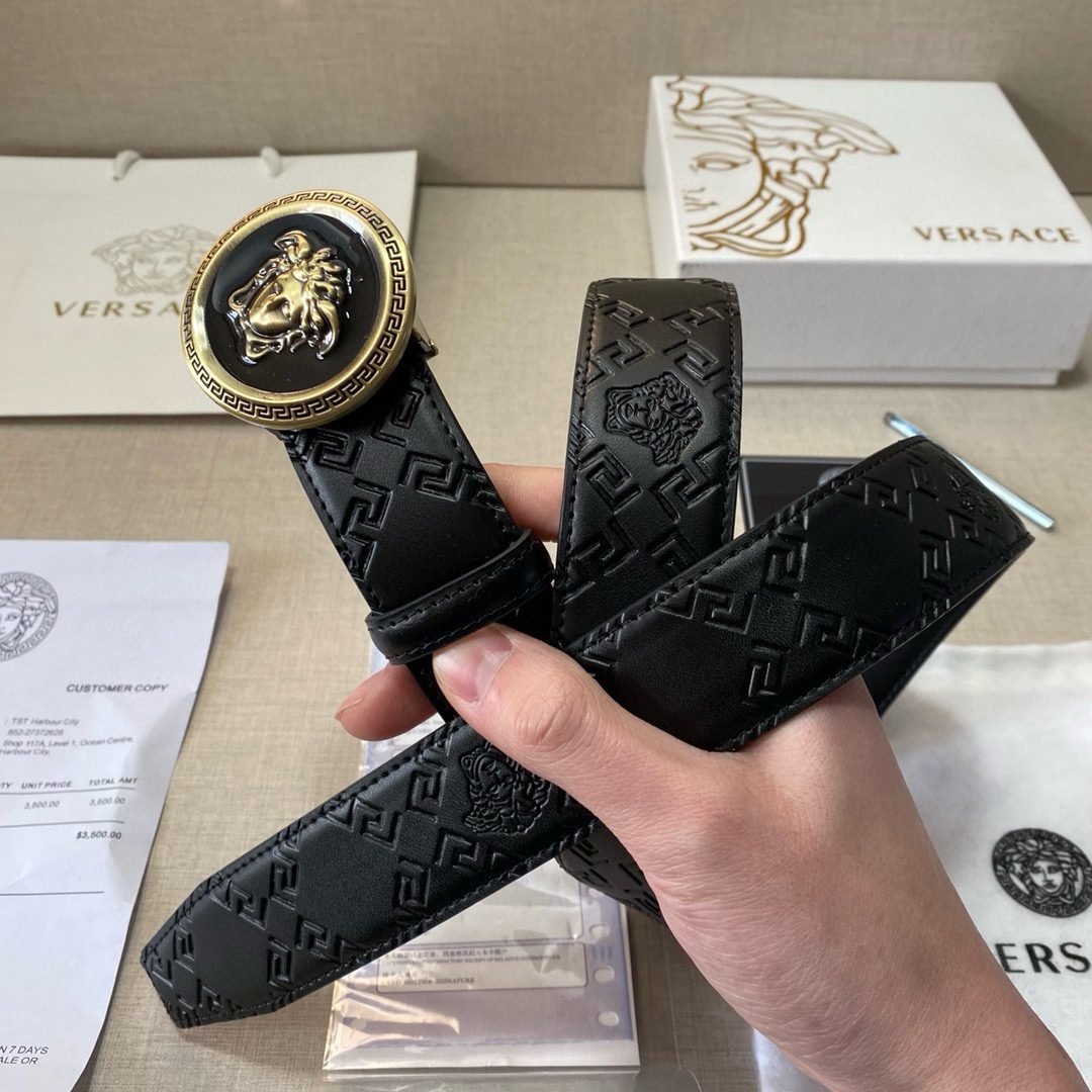 Versace Classic Circular Buckle Black Texture Belt Simple, Fashionable, Noble, Luxury