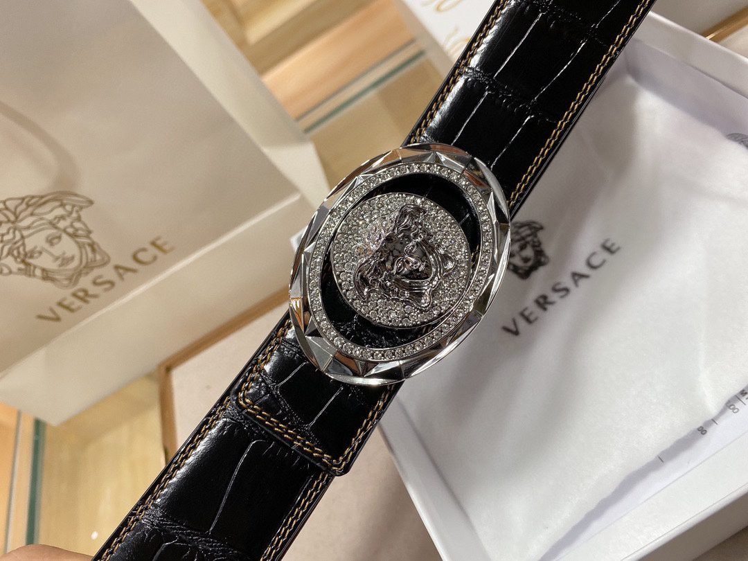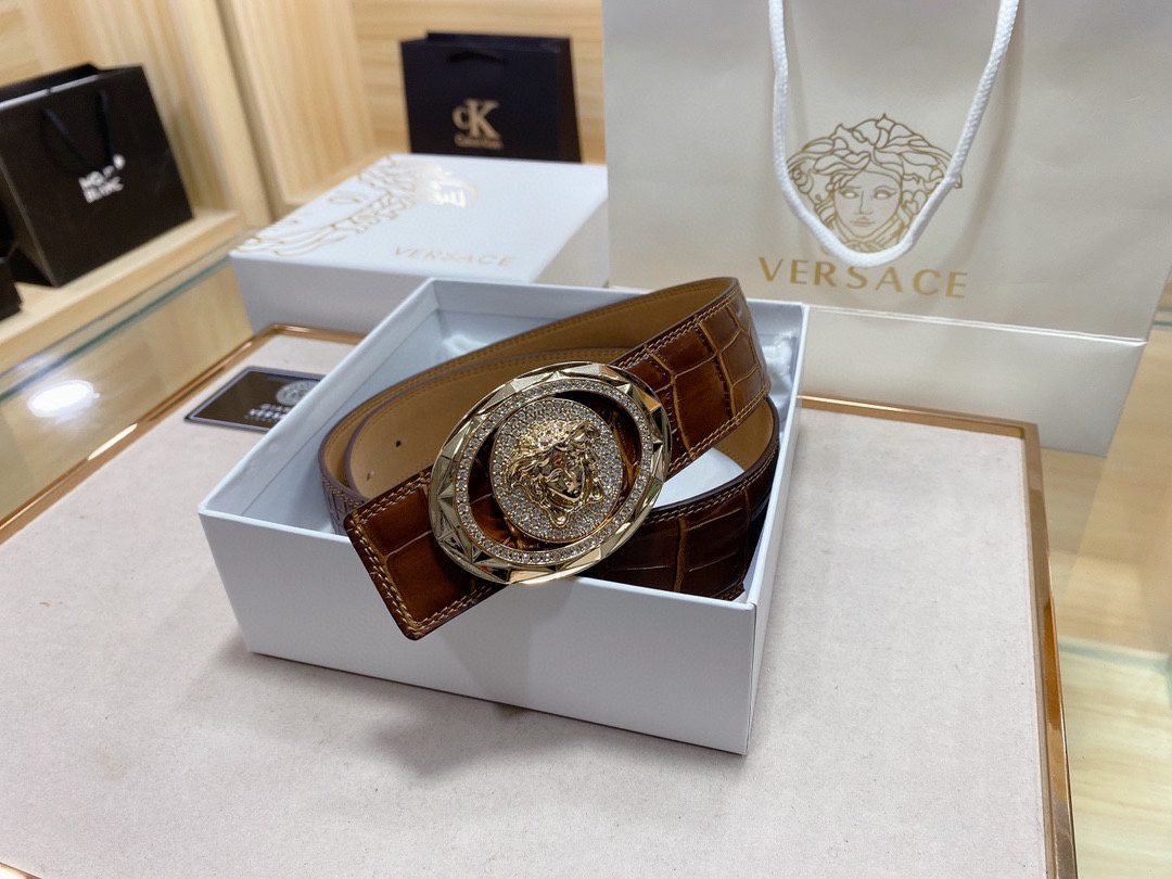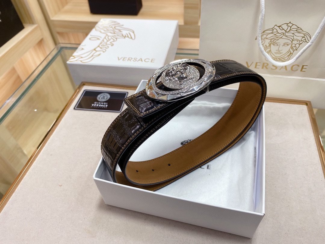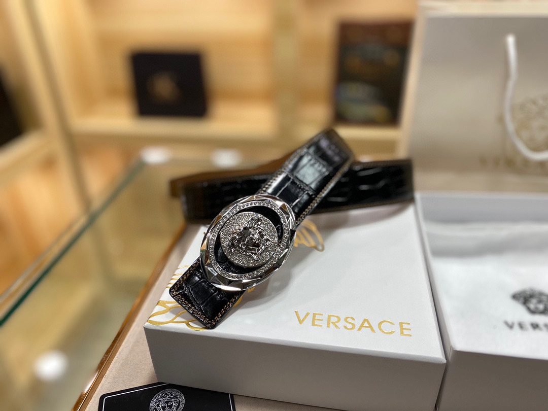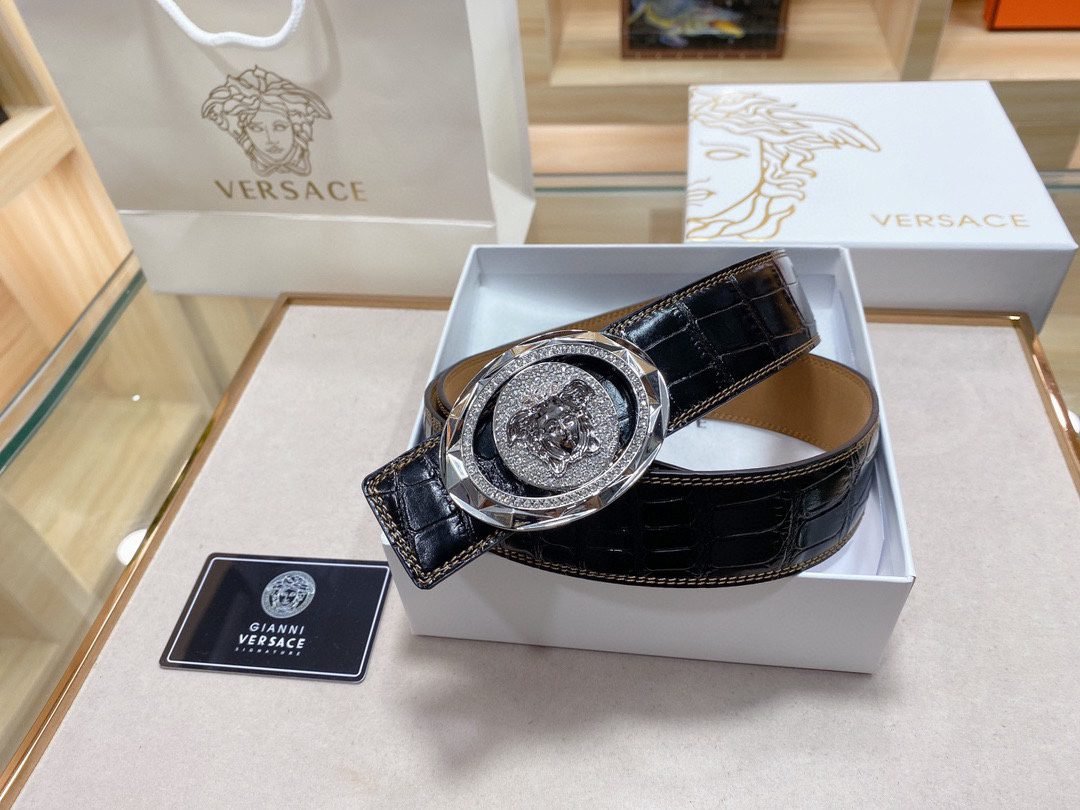 Home Belt VERSACE Belt Versace Classic Circular Buckle Crocodile Pattern Belt, Simple and Elegant, Classic and Fashionable