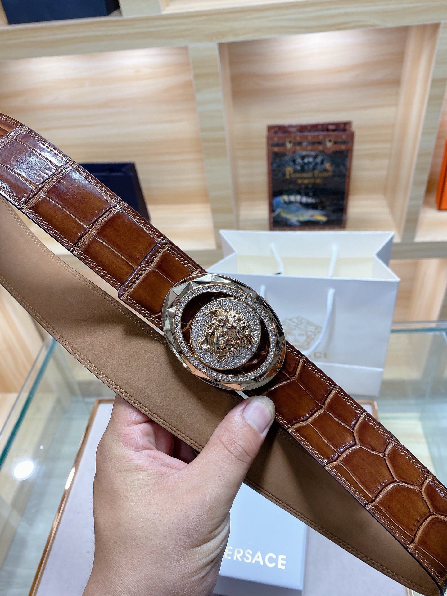 Be the first to review “Versace Classic Circular Buckle Crocodile Pattern Belt, Simple and Elegant, Classic and Fashionable” Cancel reply