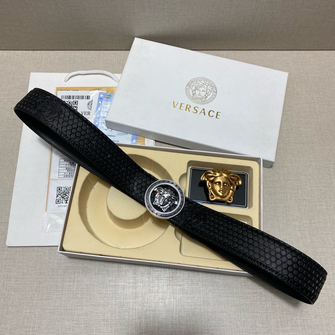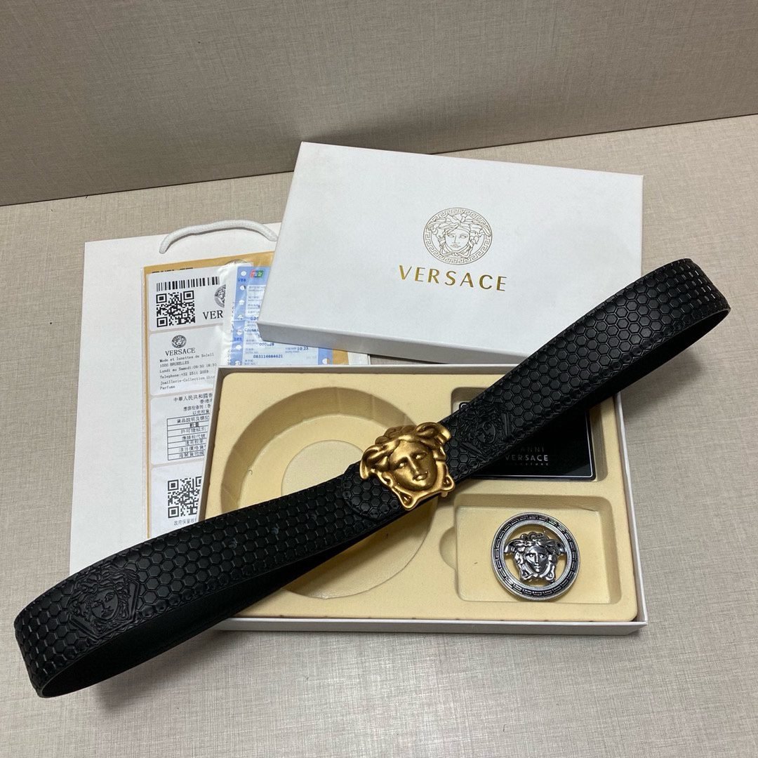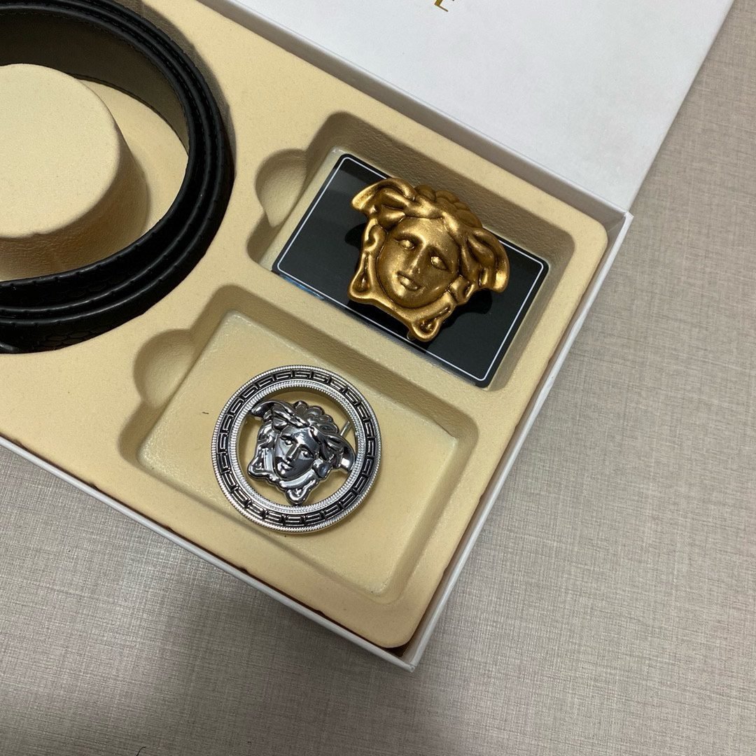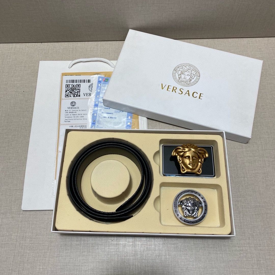 Home Belt VERSACE Belt Versace Classic Double Button Belt Gift Box Set, High end Fashion, Noble and Elegant