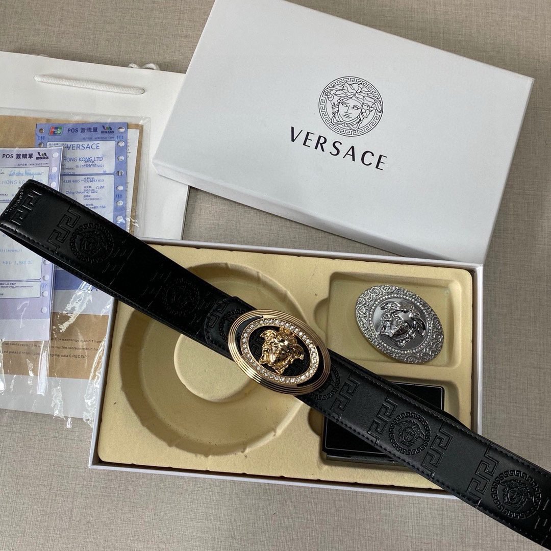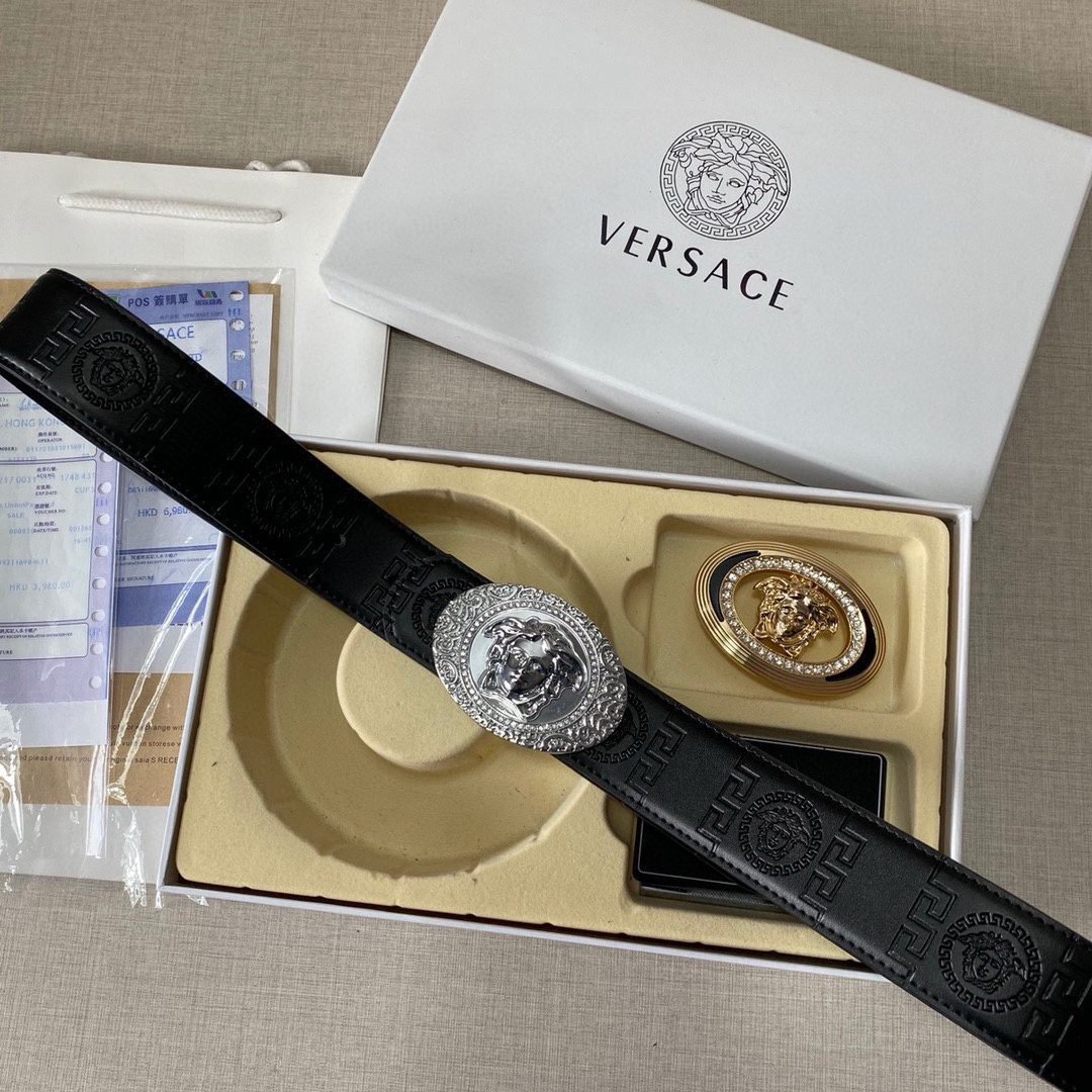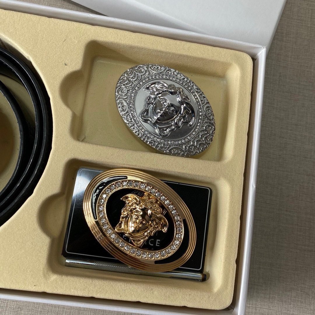 Versace Classic Double Button Round Buckle Belt Gift Box Set, High end Fashion, Noble and Elegant