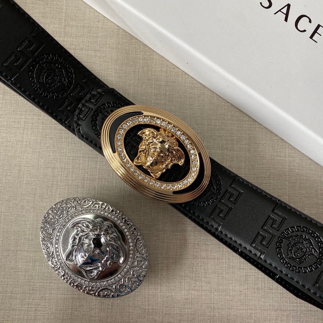 Home Belt VERSACE Belt Versace Classic Double Button Round Buckle Belt Gift Box Set, High end Fashion, Noble and Elegant