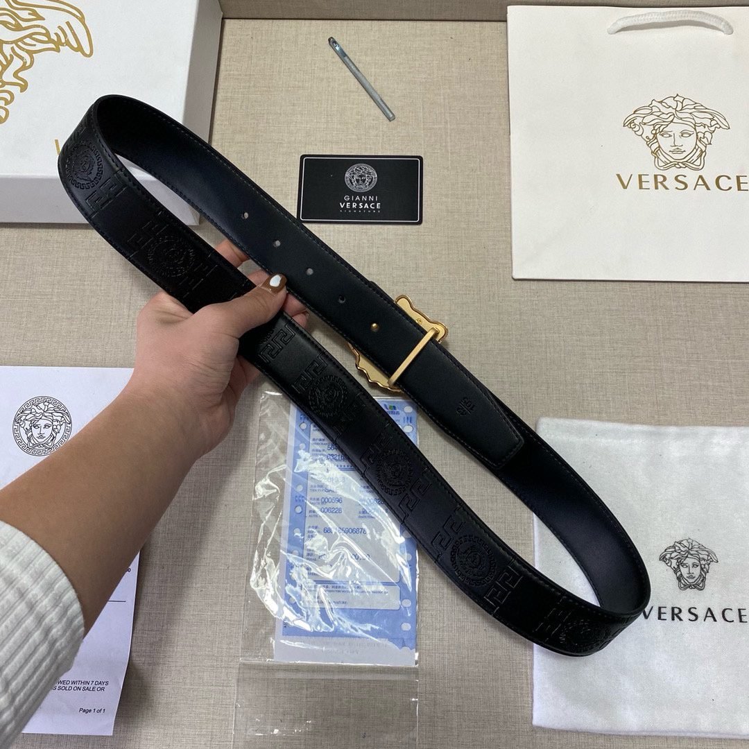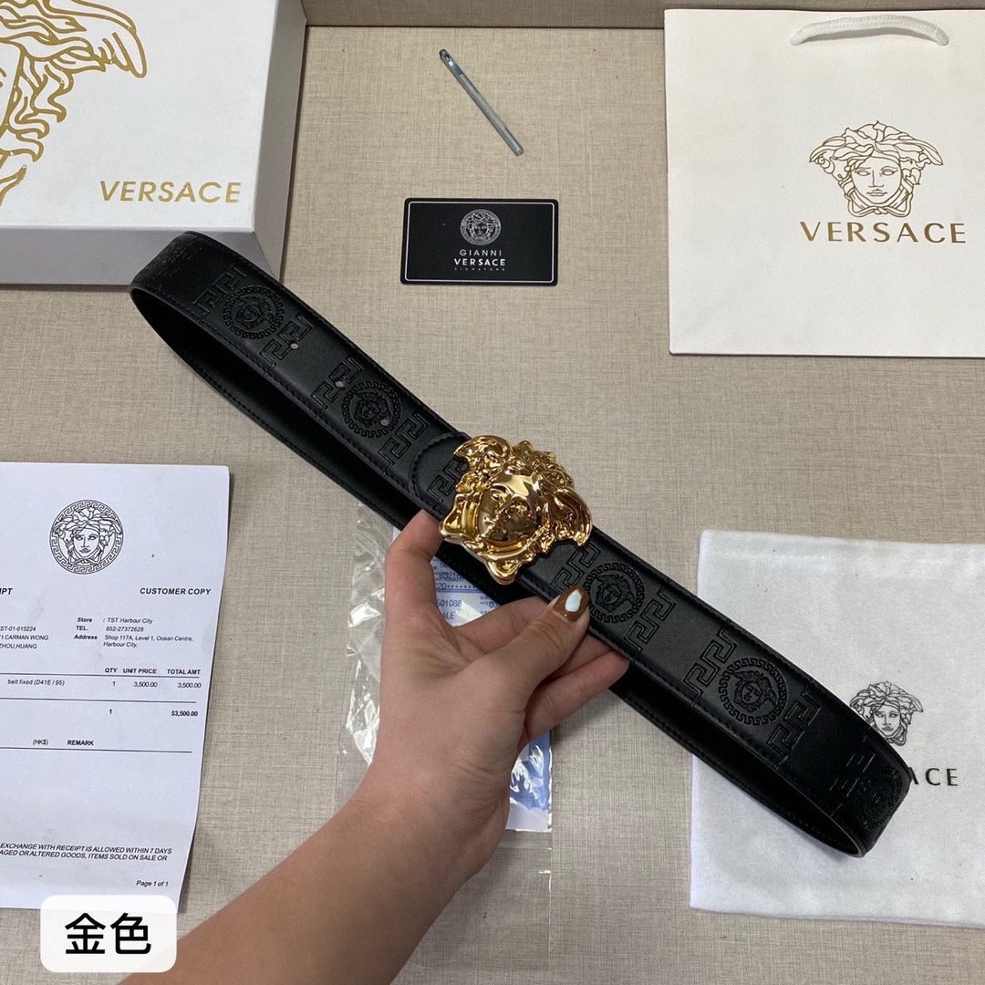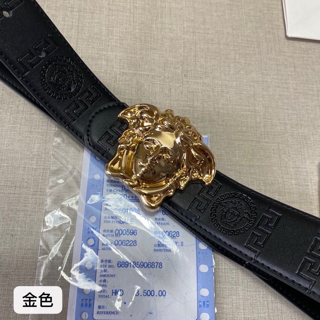 Home Belt VERSACE Belt Versace Classic Medusa Relief Buckle with Black Texture Belt, Simple, Atmospheric, Exquisite, Elegant