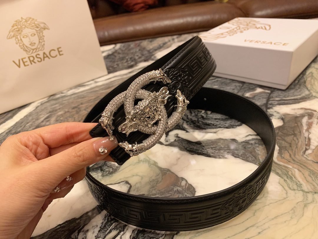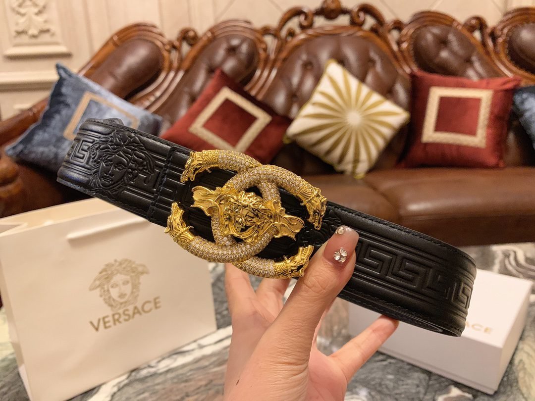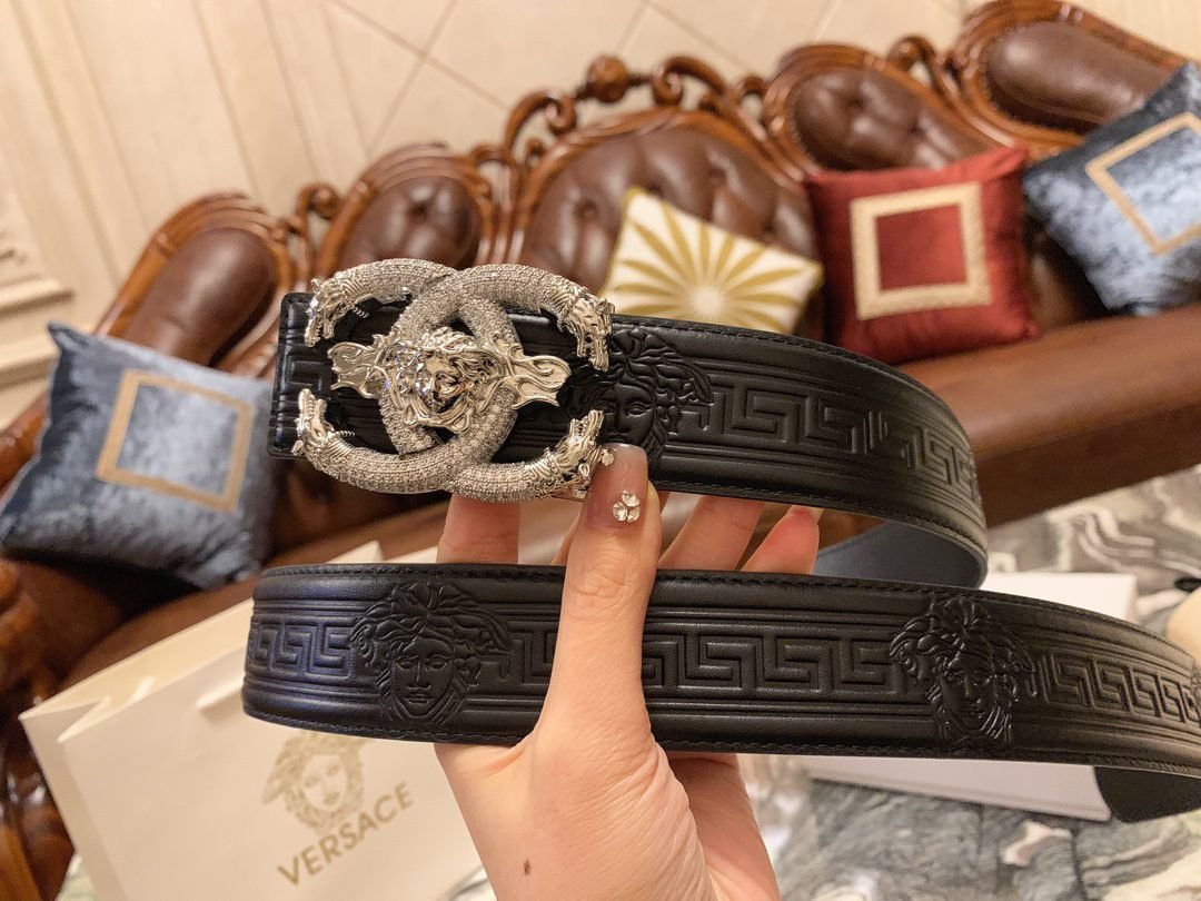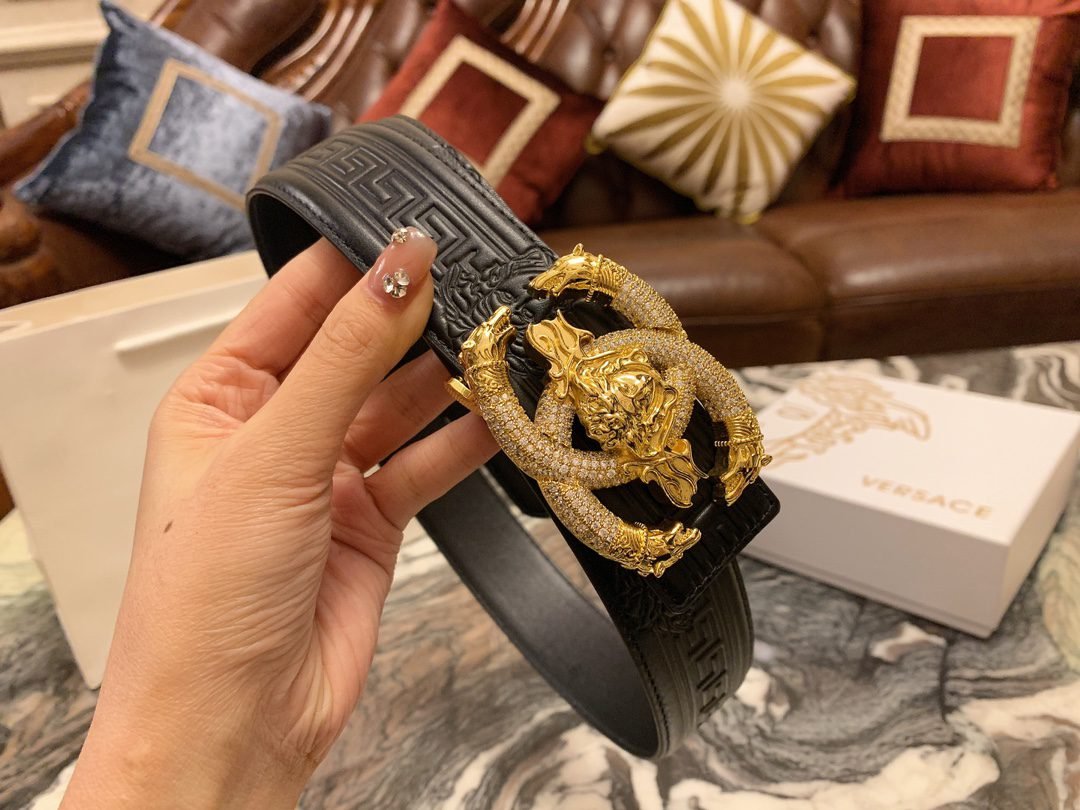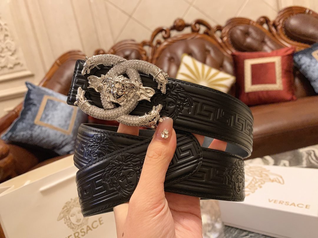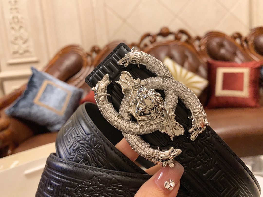 Home Belt VERSACE Belt Versace Classic Medusa Relief Ring Buckle Black Texture Belt Classic Fashion Noble Elegance