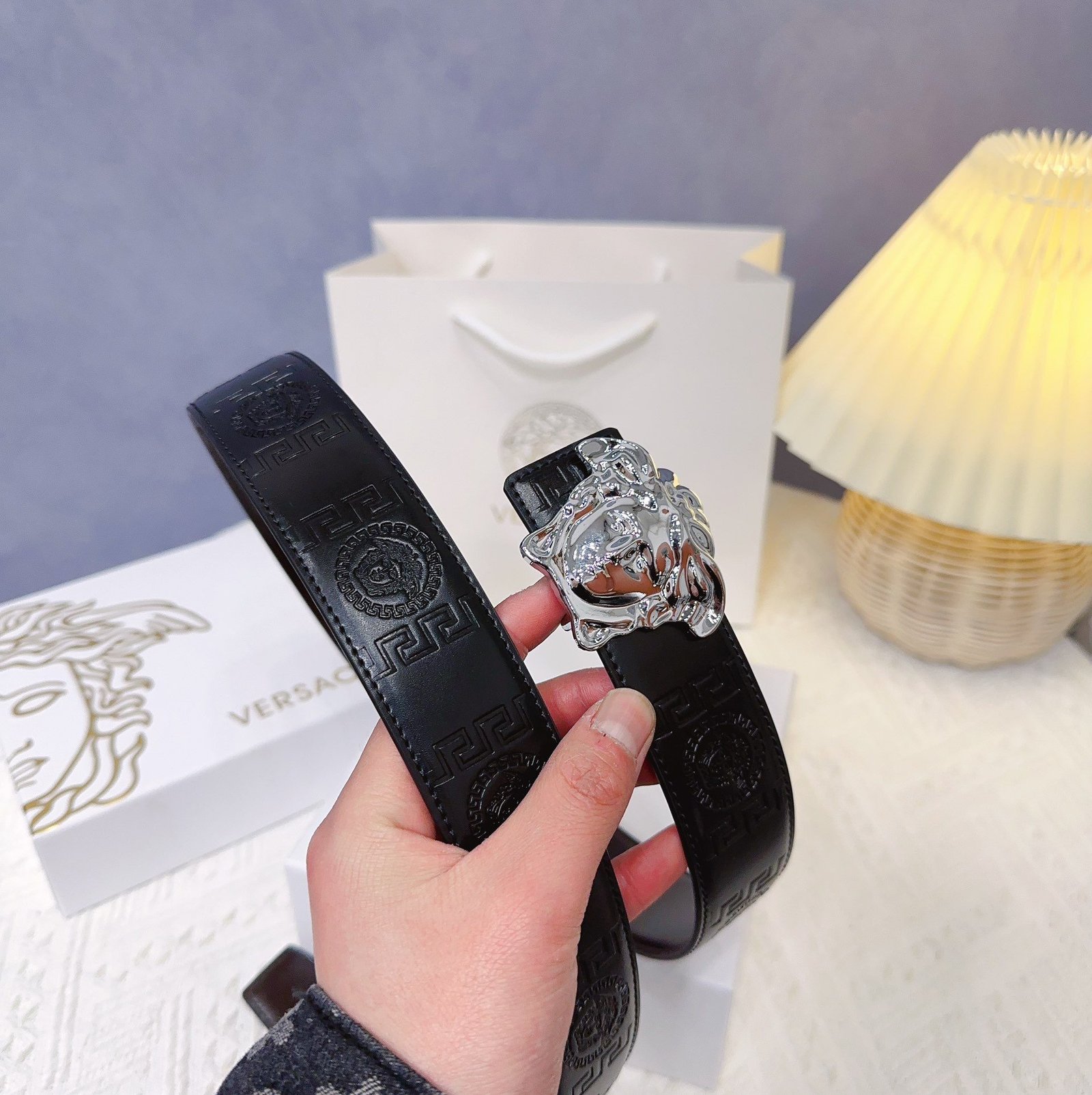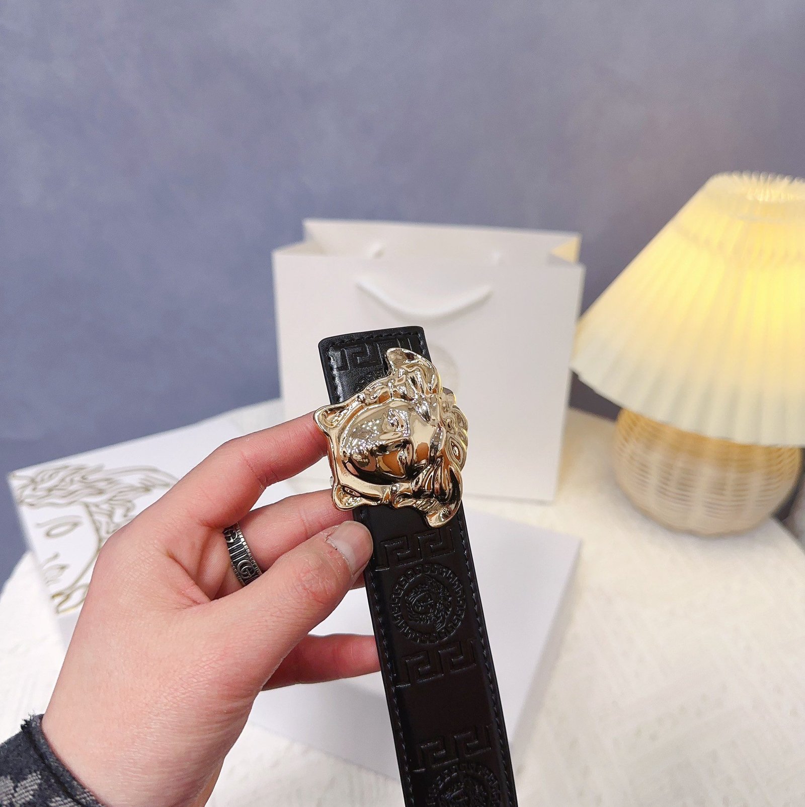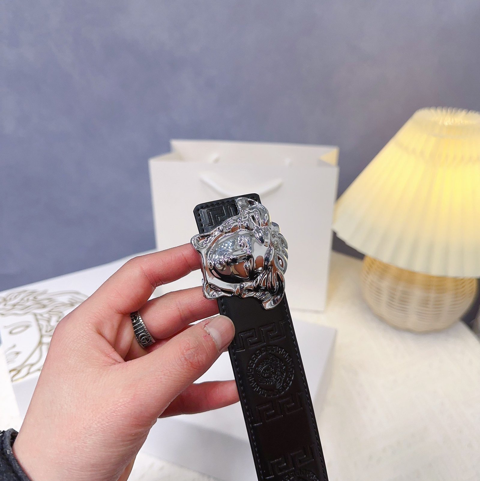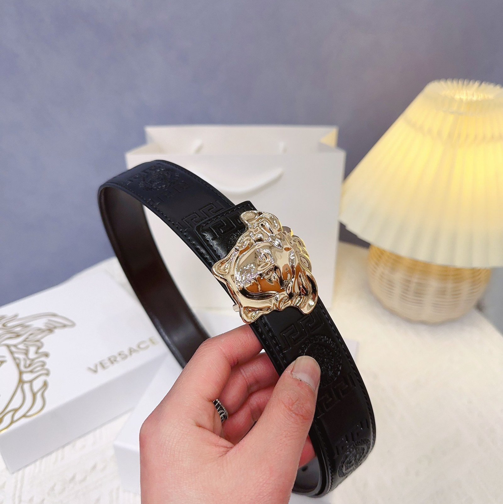 Home Belt VERSACE Belt Versace Classic Medusa Relief Ring Buckle Black Texture Belt Classic Fashion Noble Luxury