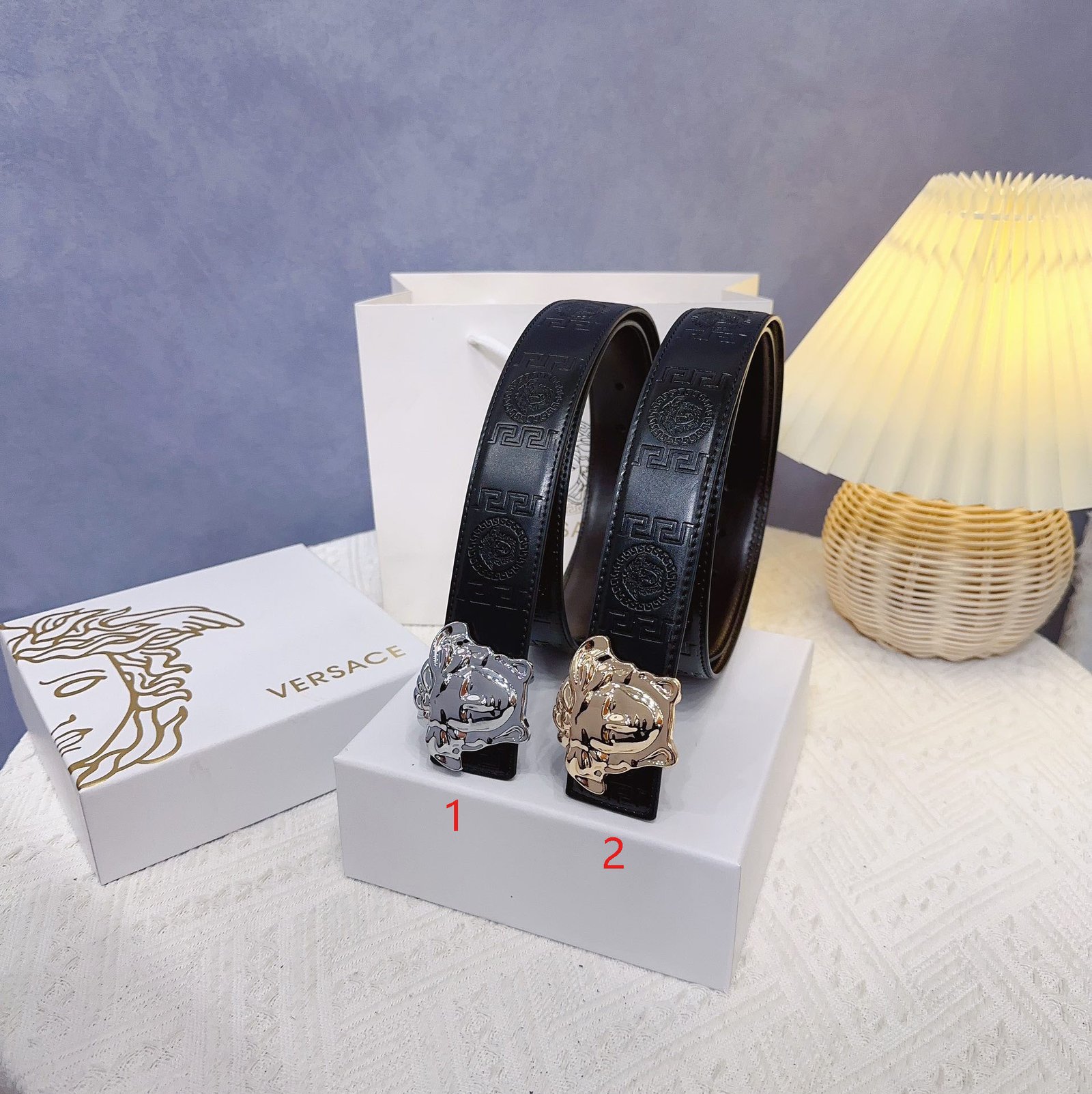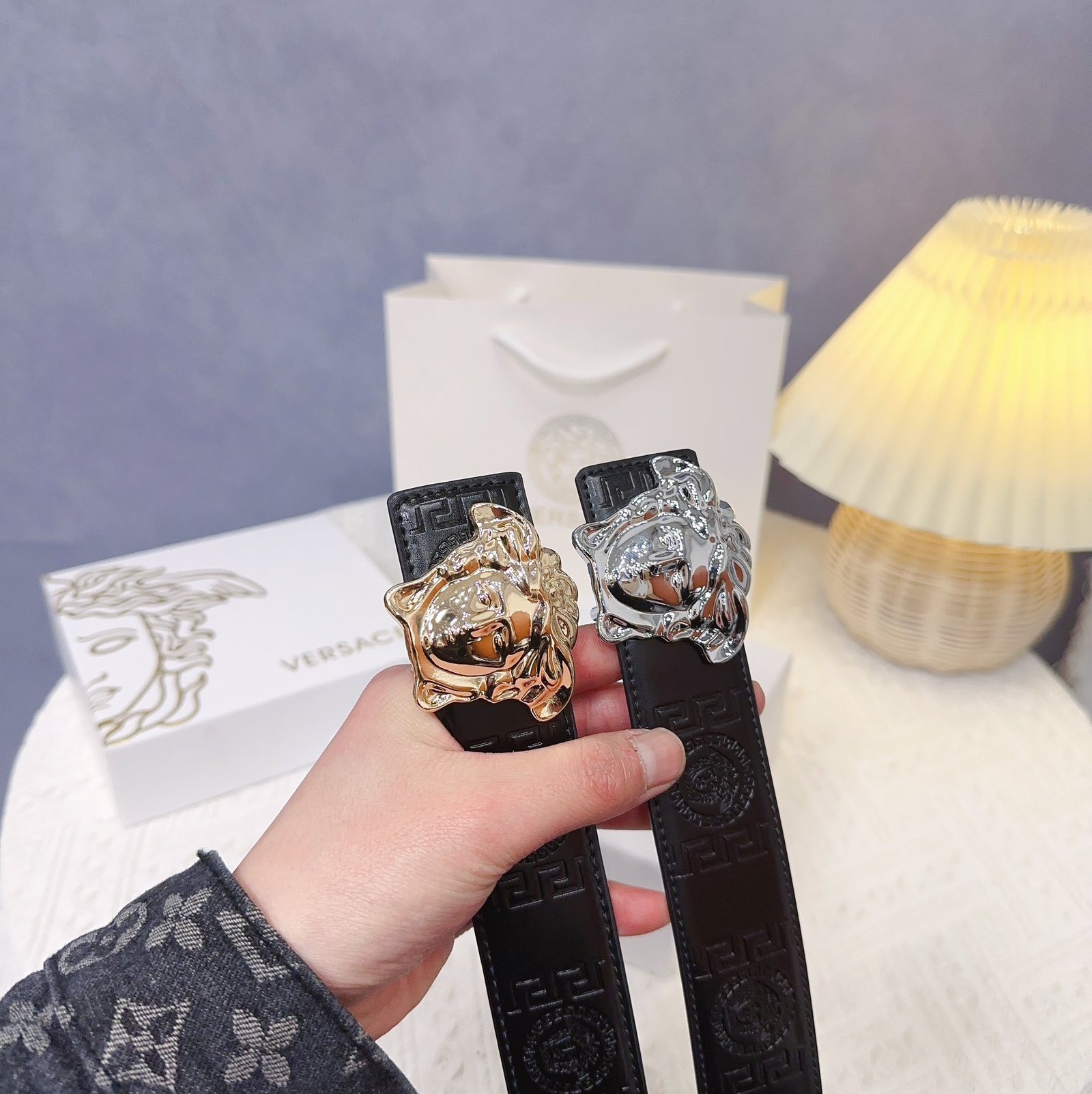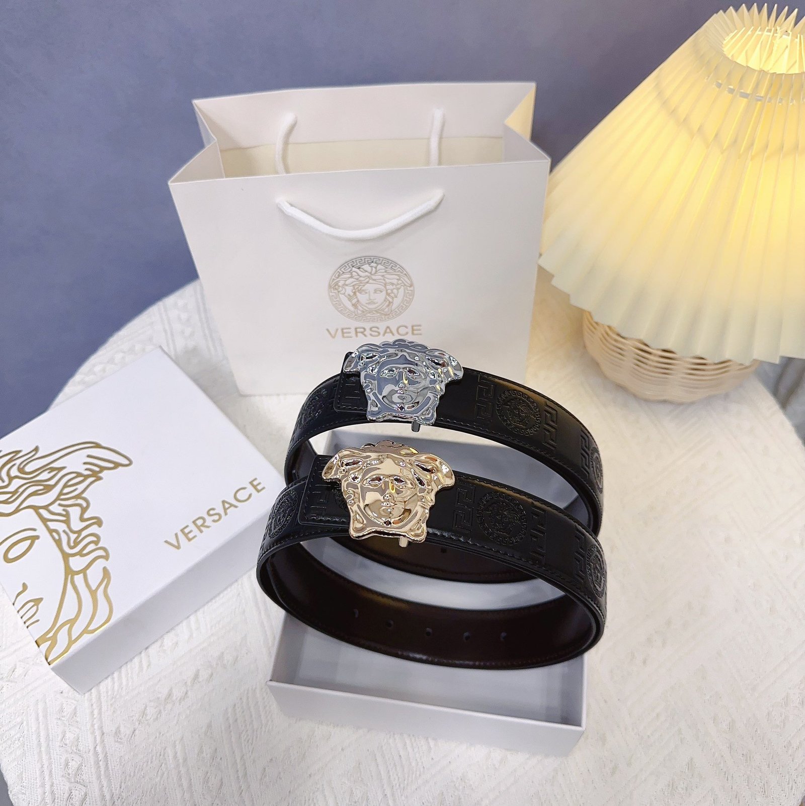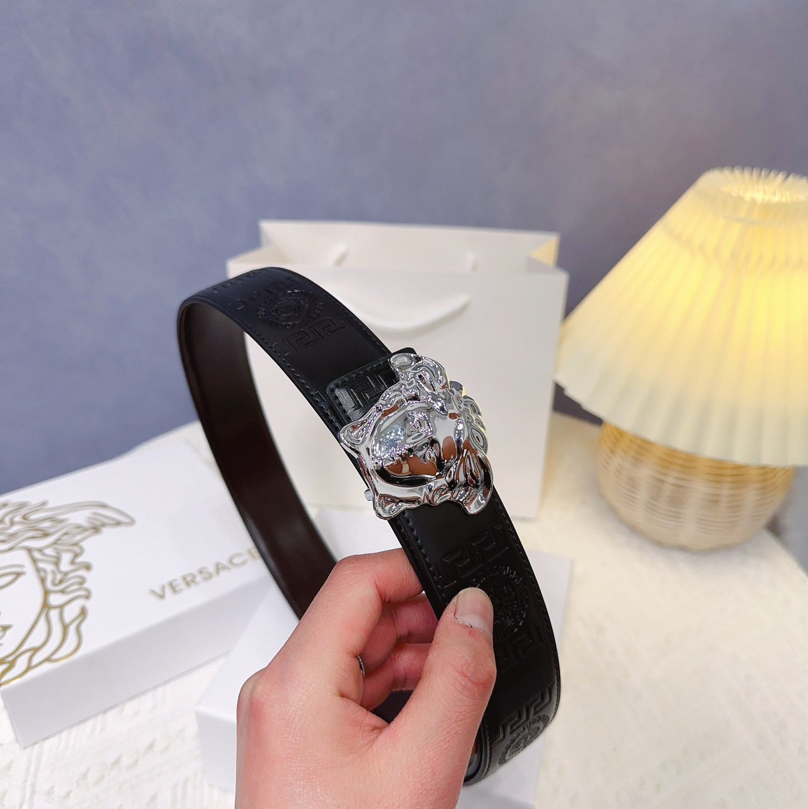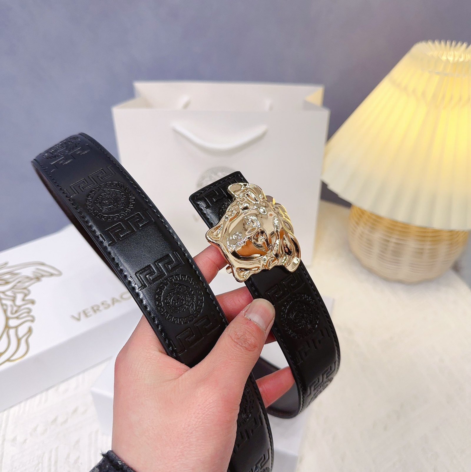 Home Belt VERSACE Belt Versace Classic Medusa Relief Ring Buckle Black Texture Belt Classic Fashion Noble Luxury