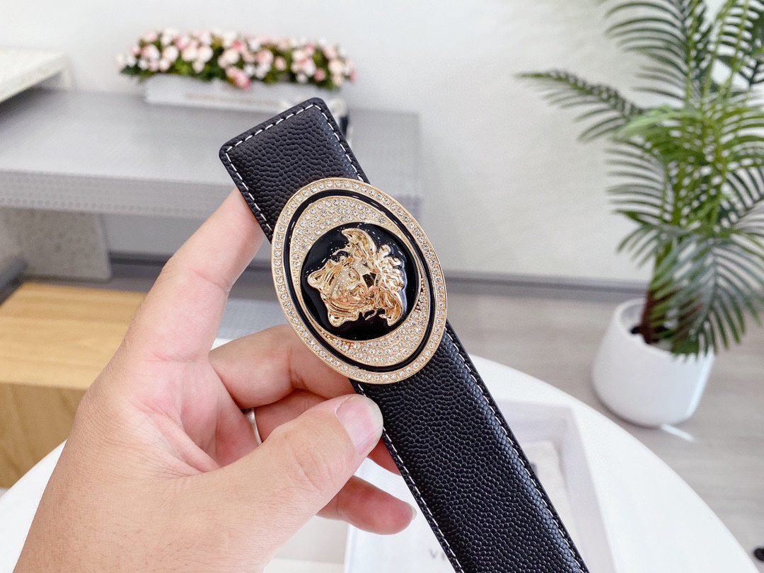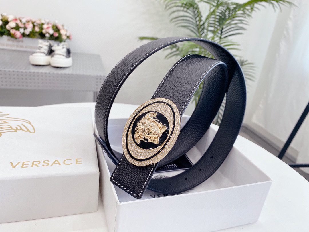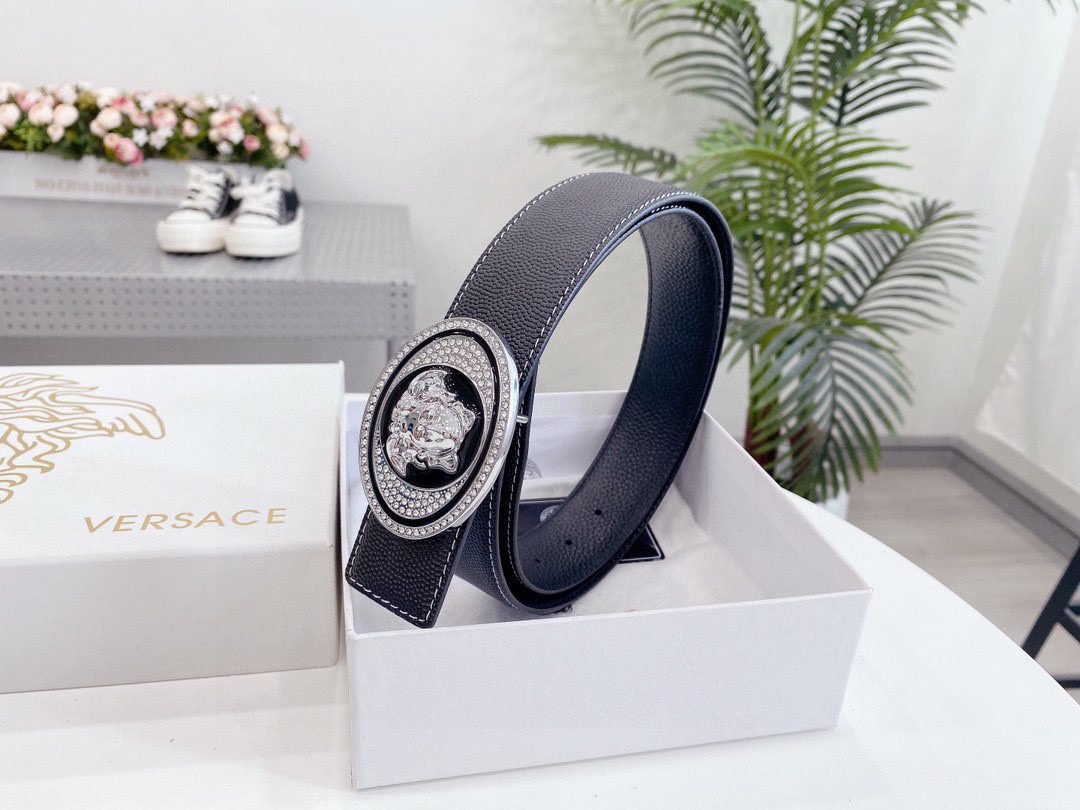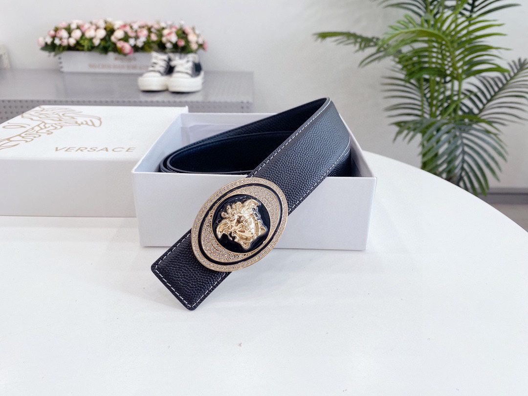 Versace Classic Round Buckle Black Belt Classic Fashion Exquisite Elegance