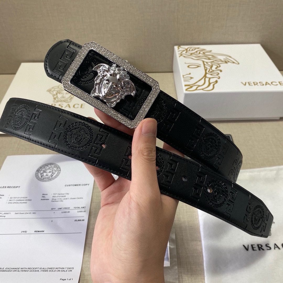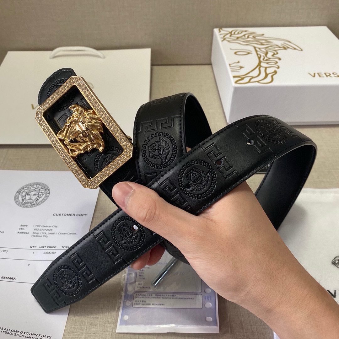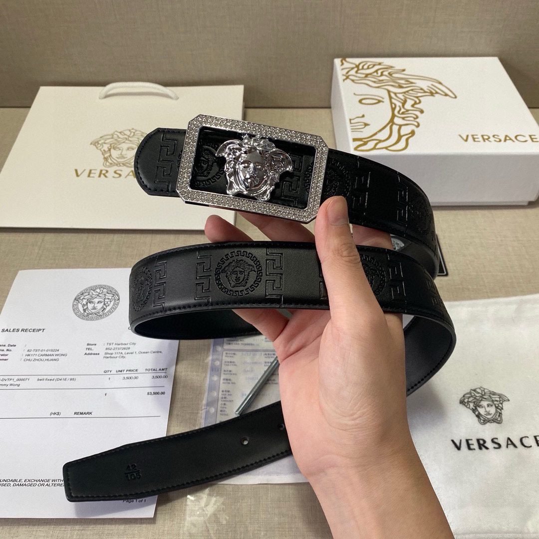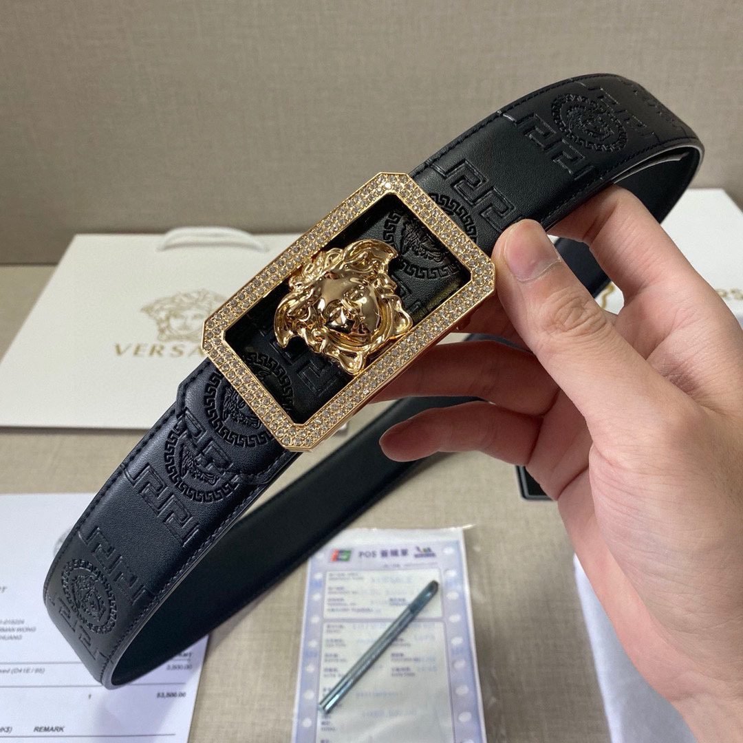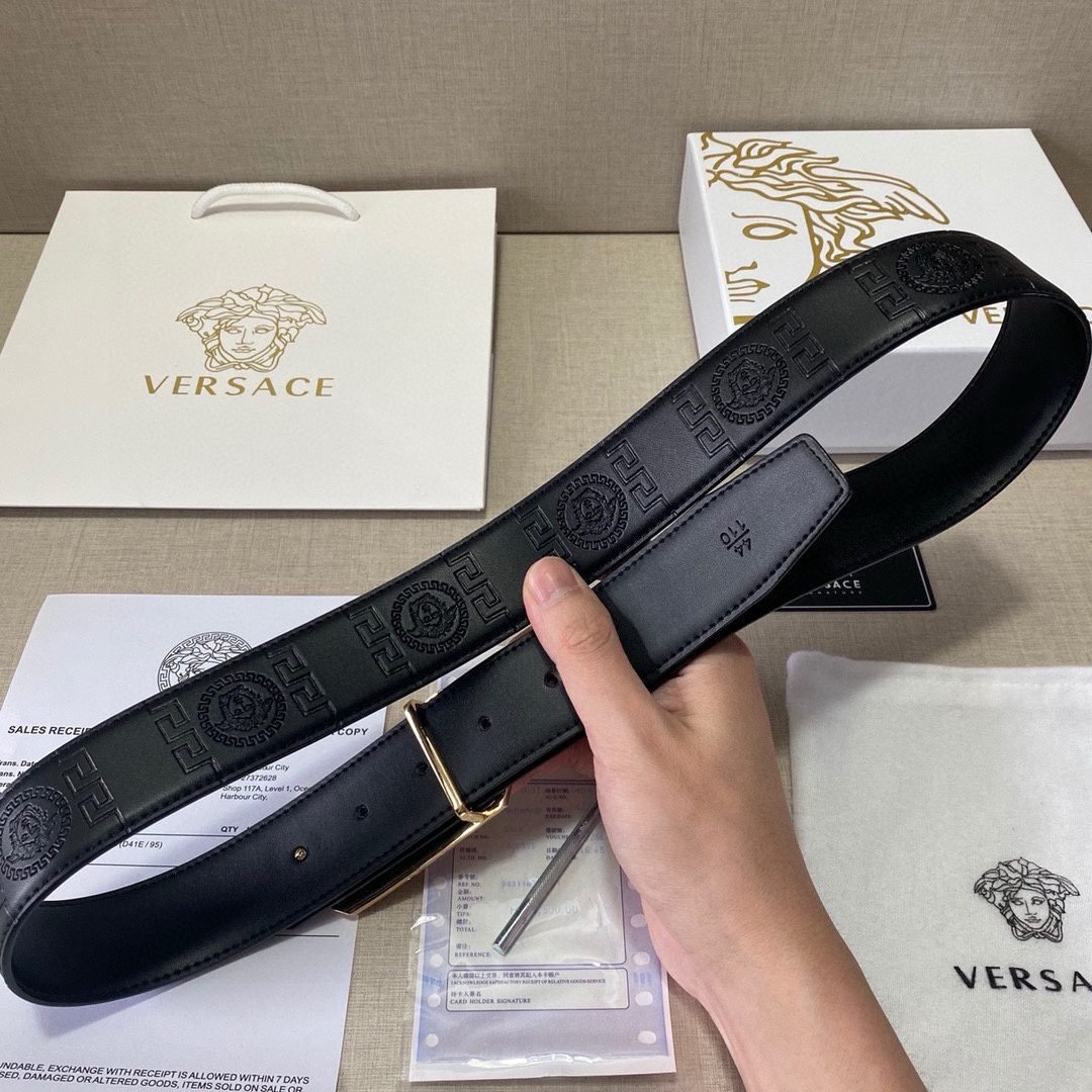 Home Belt VERSACE Belt Versace Classic Square Buckle Black Texture Belt Classic Fashion Exquisite Elegance