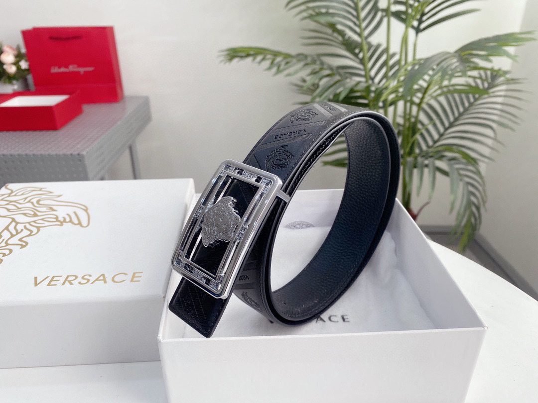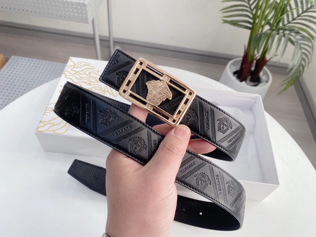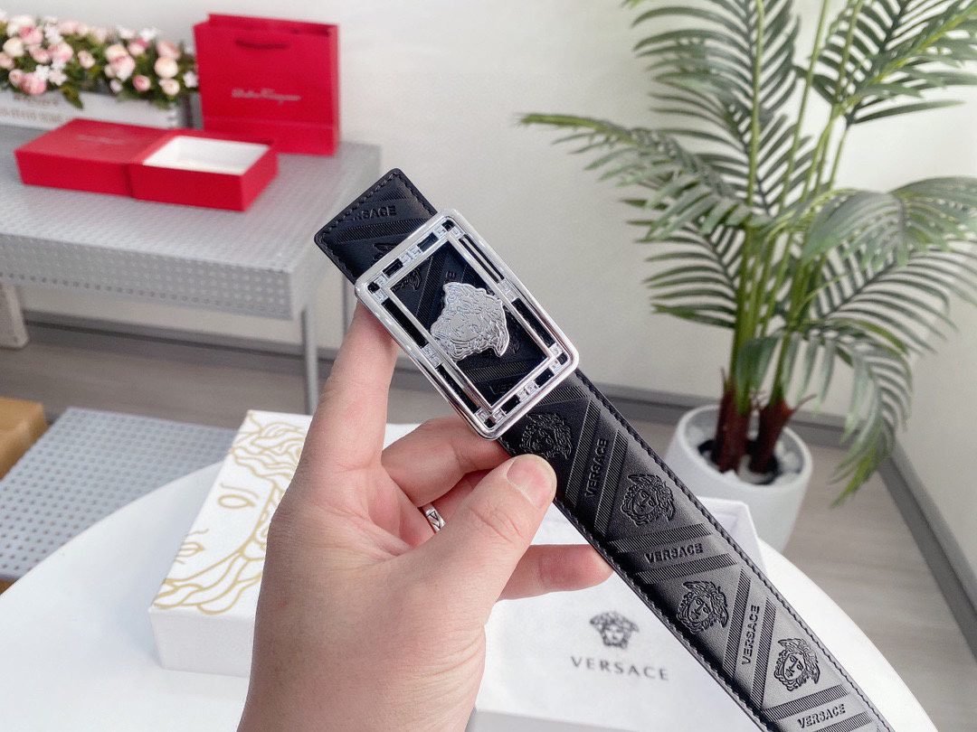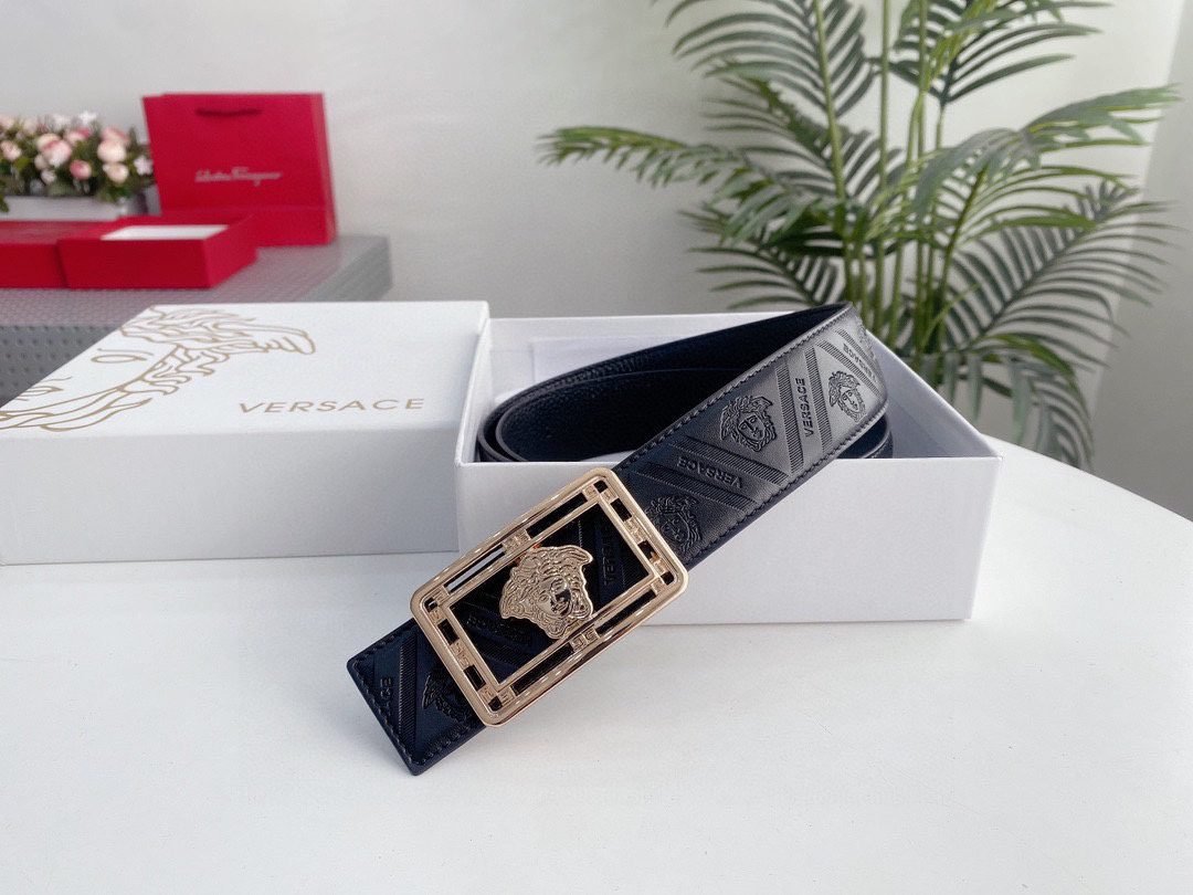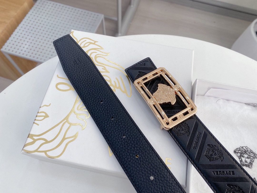 Home Belt VERSACE Belt Versace Classic Square Buckle Black Texture Belt Simple, Elegant, Exquisite, and Elegant