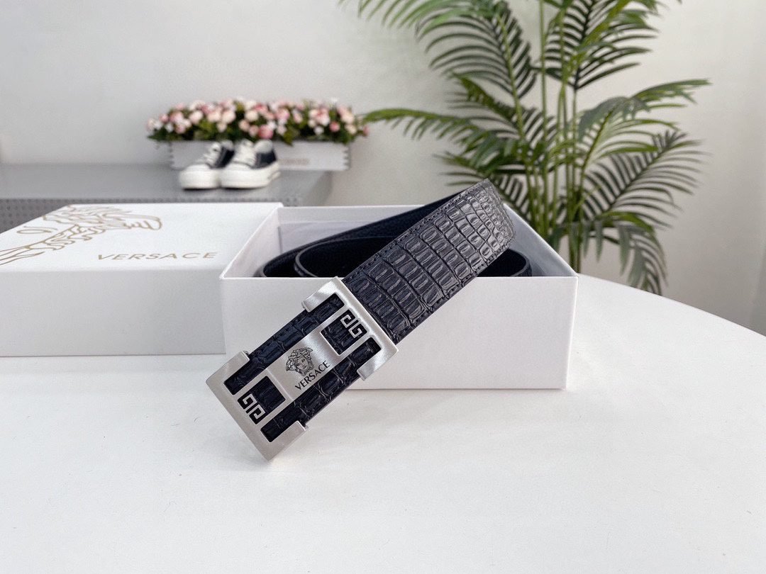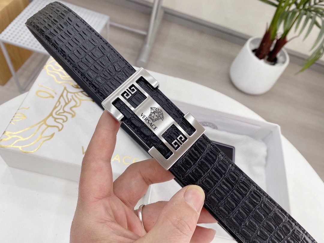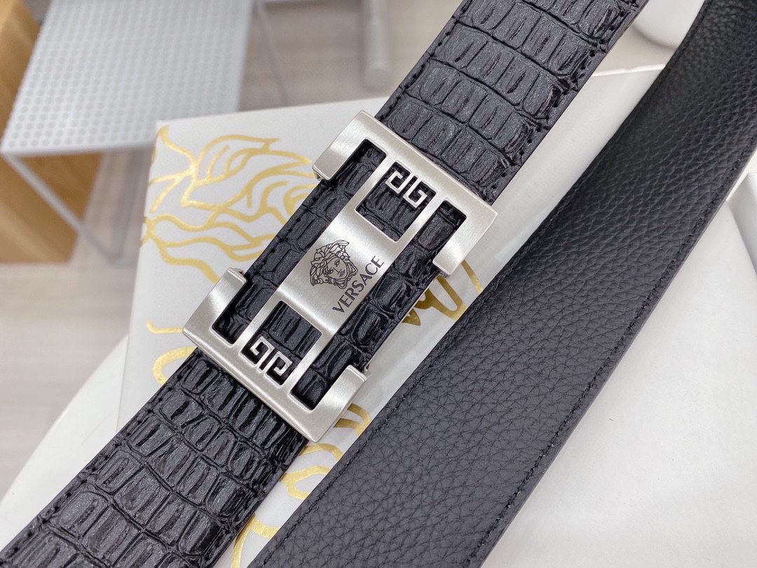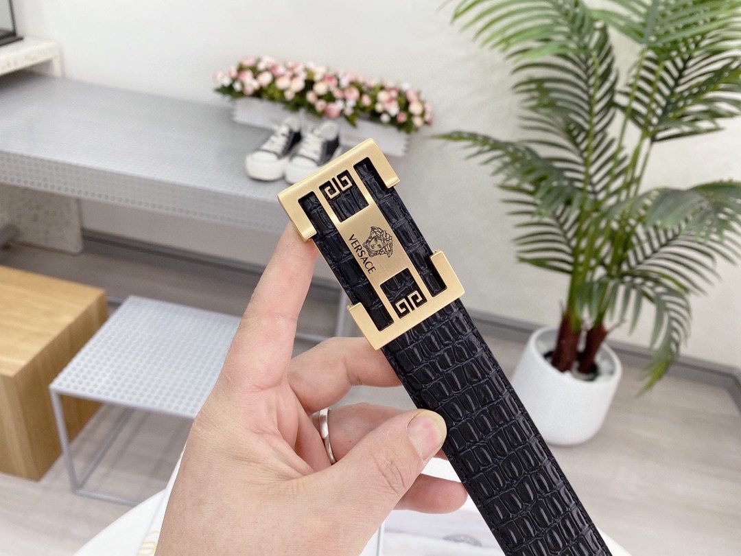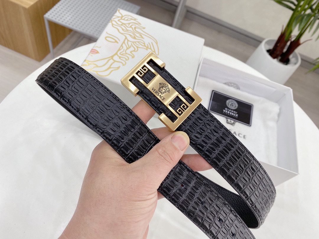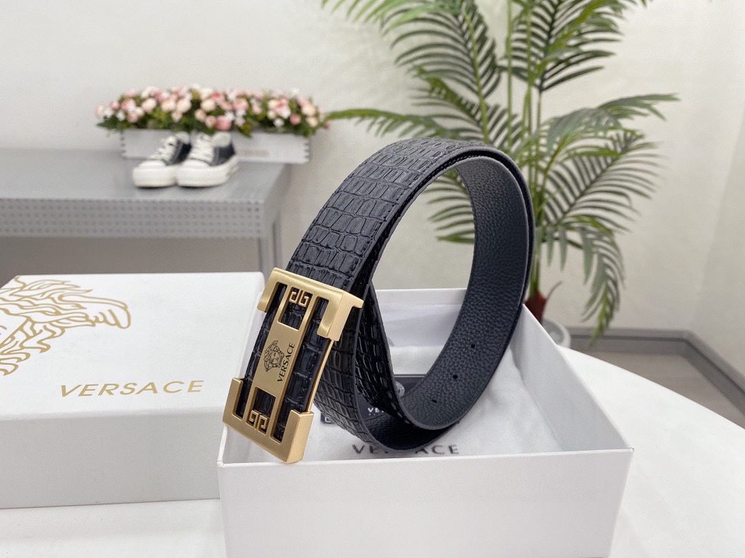 Home Belt VERSACE Belt Versace Classic Square Ring Buckle Black Crocodile Pattern Belt Simple, Fashionable, Noble, and Elegant