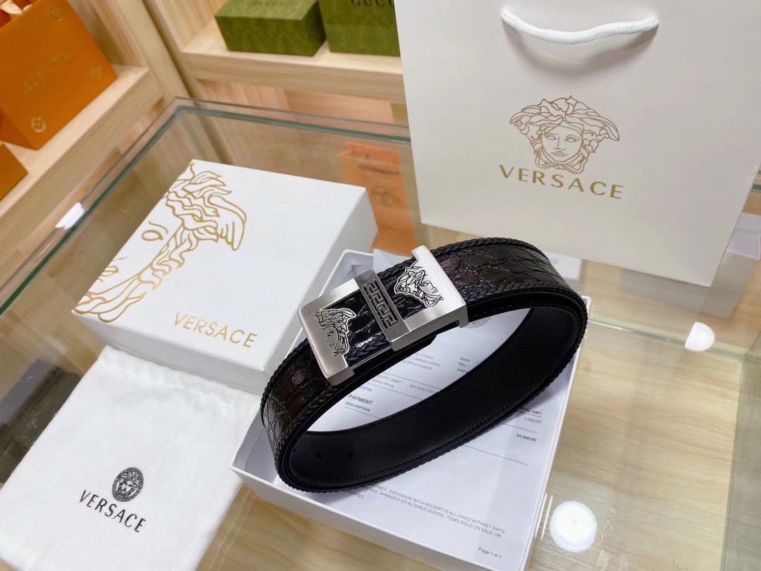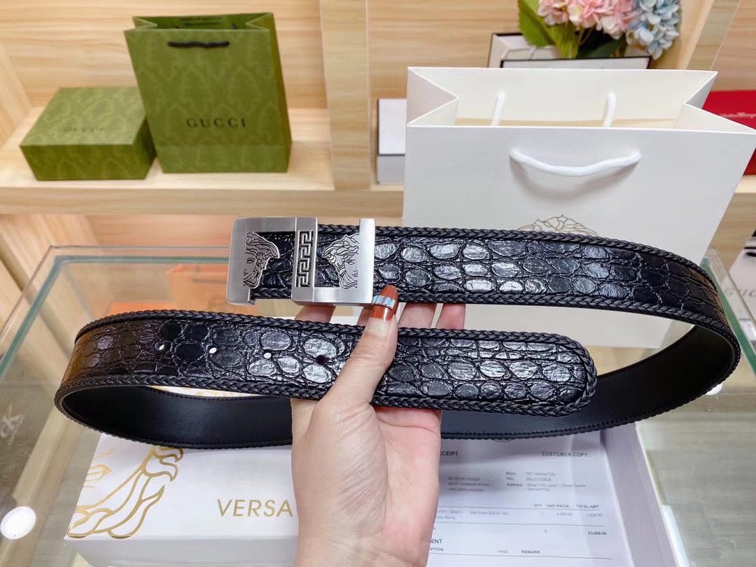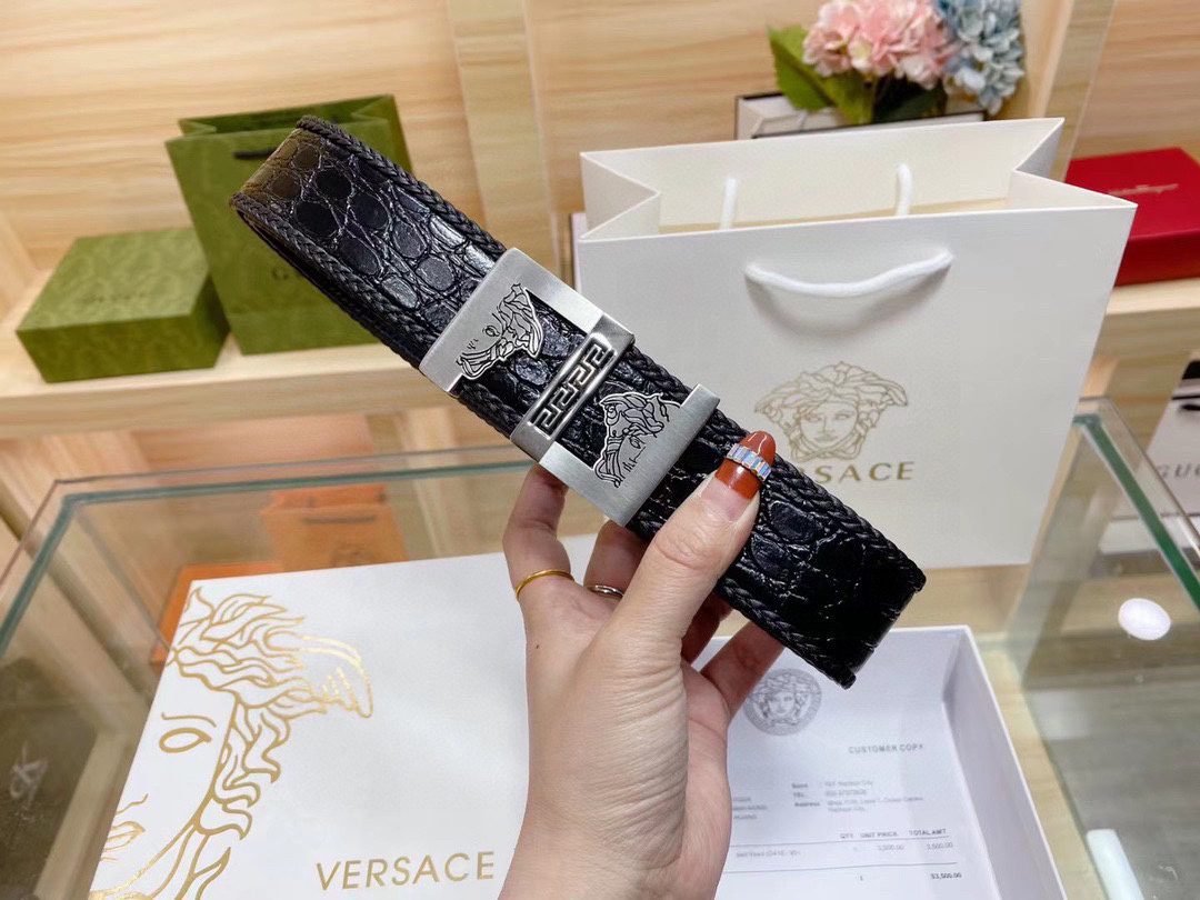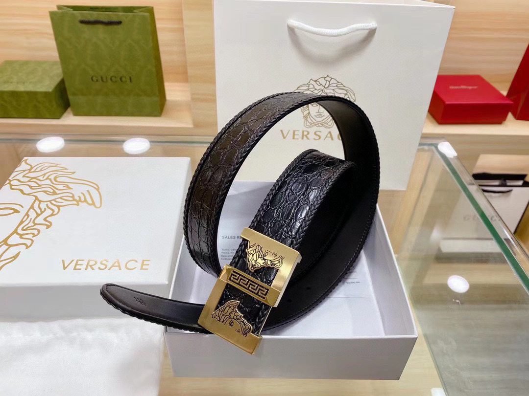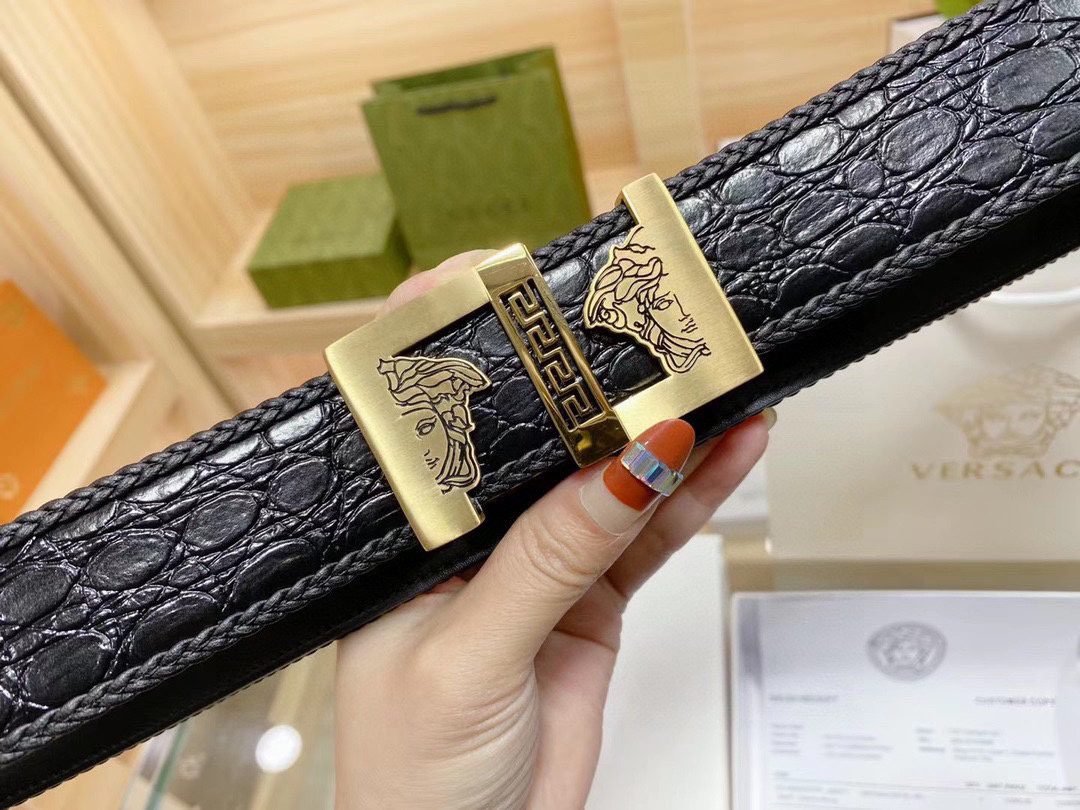 Home Belt VERSACE Belt Versace Classic Square Ring Buckle Black Crocodile Pattern Belt Simple, Fashionable, Noble, and Elegant