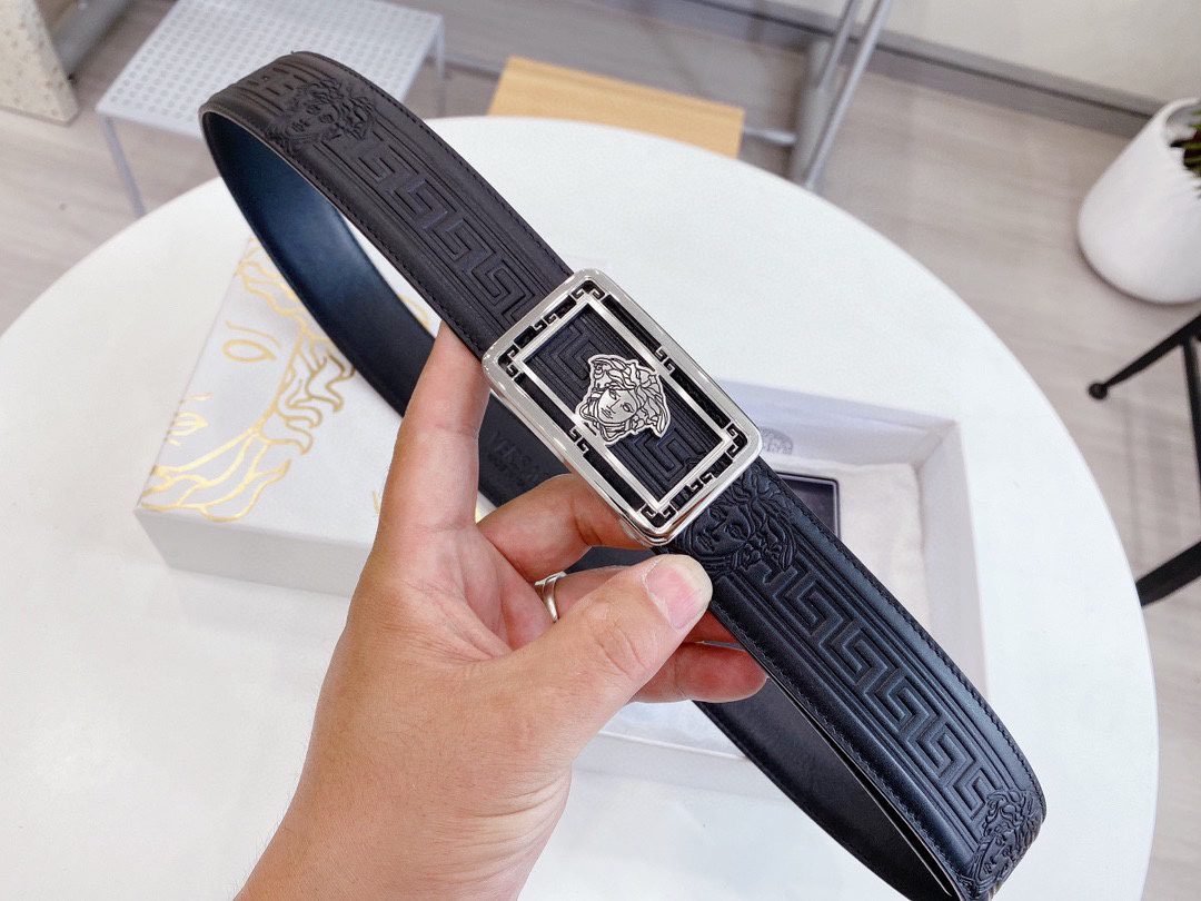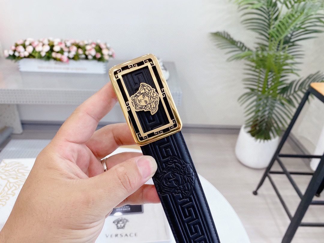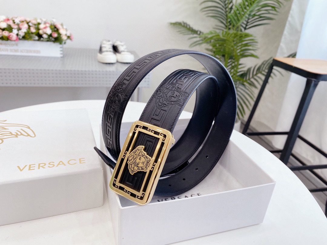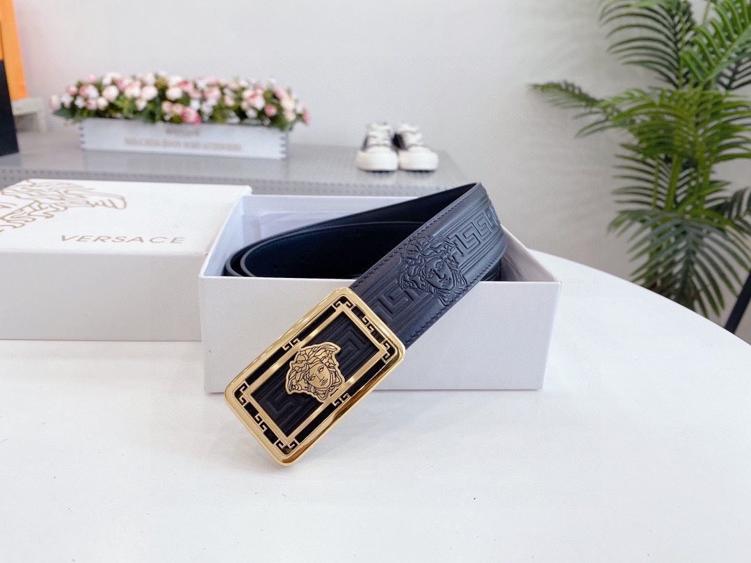 Home Belt VERSACE Belt Versace Classic Square Ring Buckle Black Textured Belt Simple and Elegant Classic Fashion