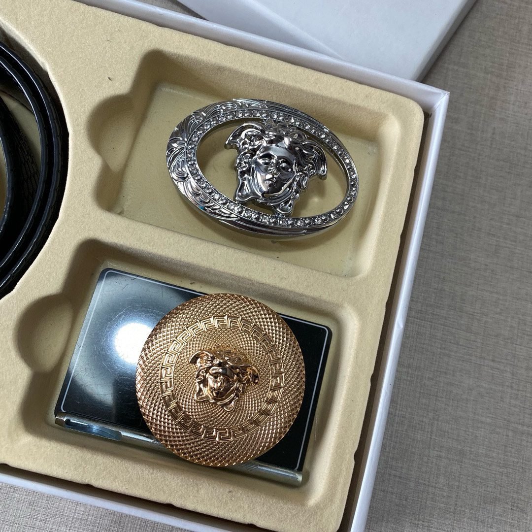 Versace Classic Two Buckle Belt Gift Box Set, High end Fashion, Noble and Elegant