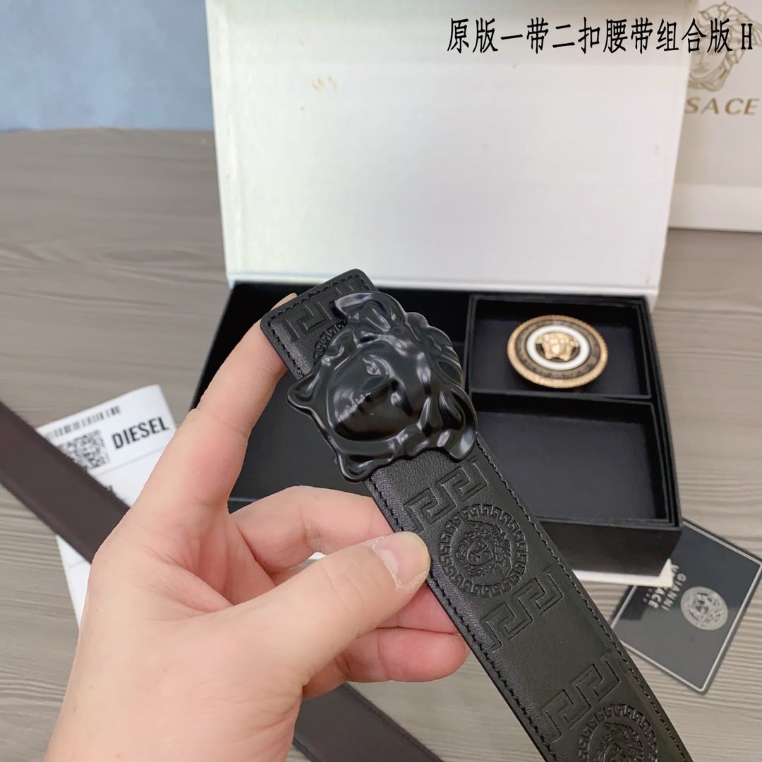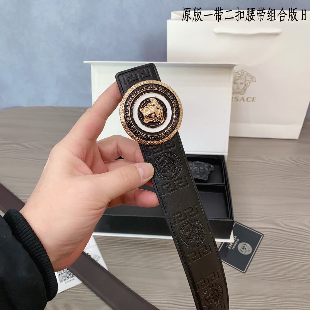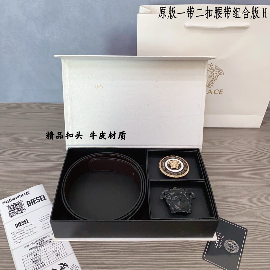 Versace Classic Round Buckle Belt Gift Box Set, with the brand’s consistent exquisite craftsmanship and excellent quality, creates a unique fashion accessory. The gift box contains a carefully selected black belt, paired with gold and black fasteners, showcasing the brand’s ultimate pursuit of details. The belt is made of top grade leather material, with a soft and delicate touch, durable and wear-resistant, while also combining fashion and practicality.、