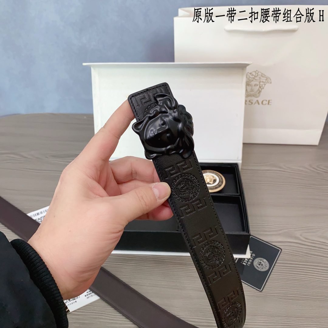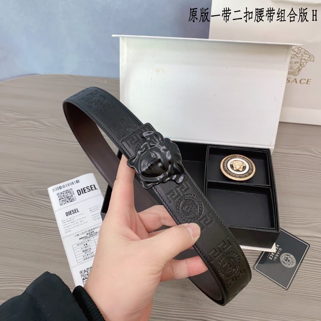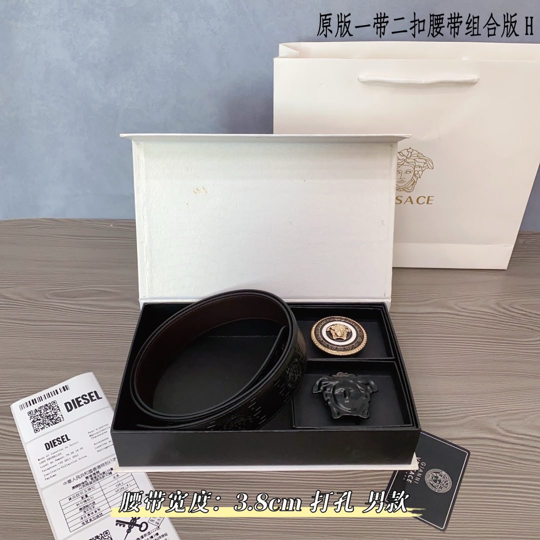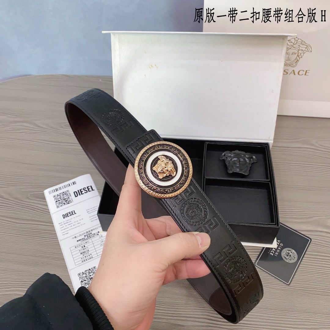 Versace Classic Round Buckle Belt Gift Box Set, with the brand’s consistent exquisite craftsmanship and excellent quality, creates a unique fashion accessory. The gift box contains a carefully selected black belt, paired with gold and black fasteners, showcasing the brand’s ultimate pursuit of details. The belt is made of top grade leather material, with a soft and delicate touch, durable and wear-resistant, while also combining fashion and practicality.、