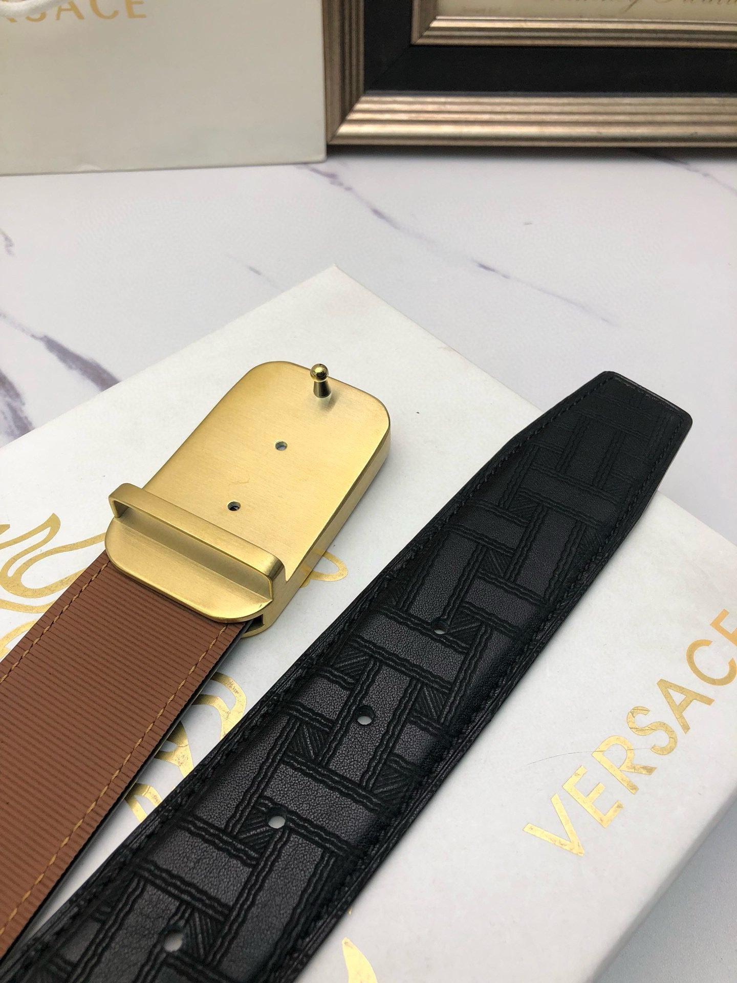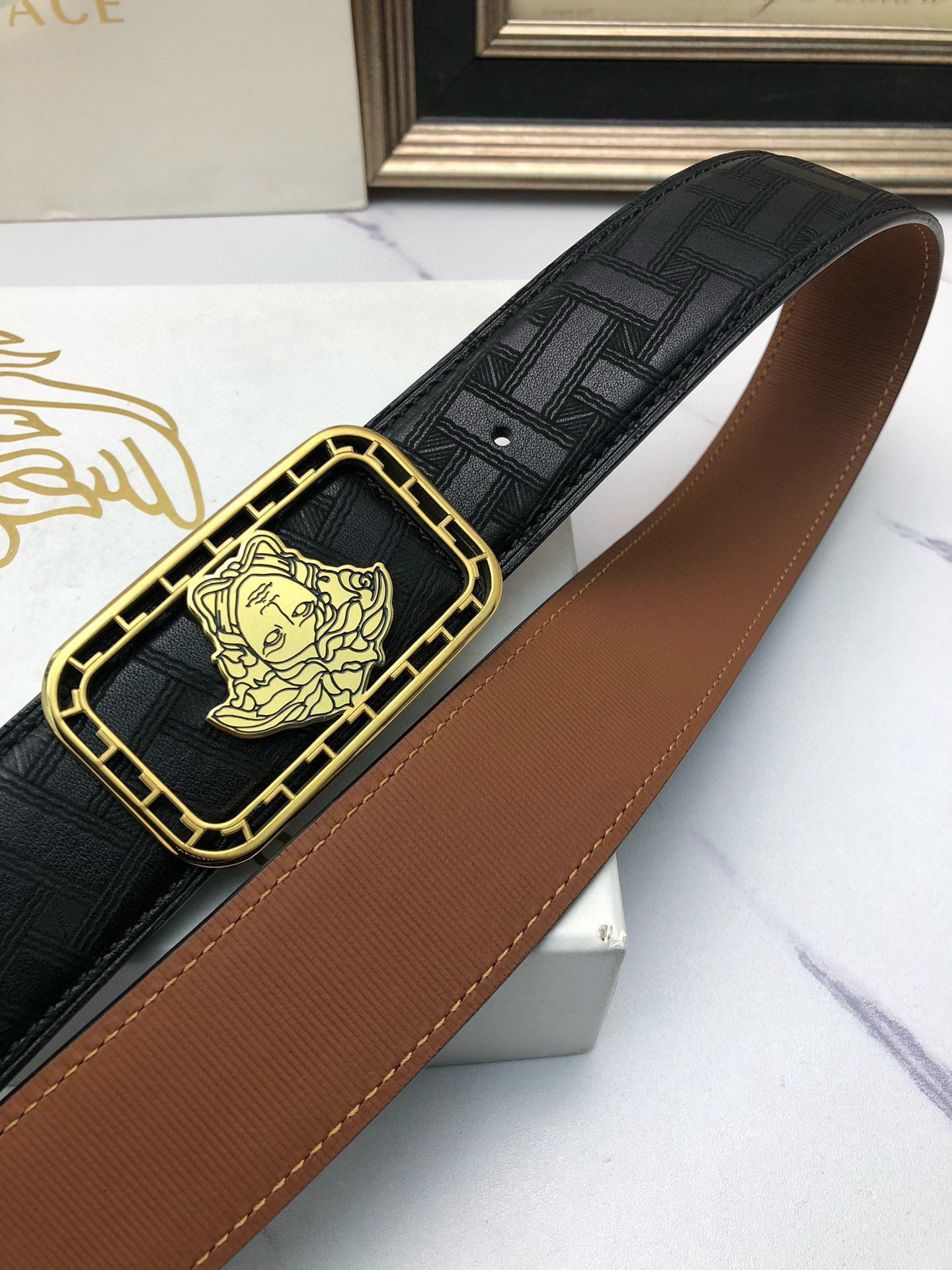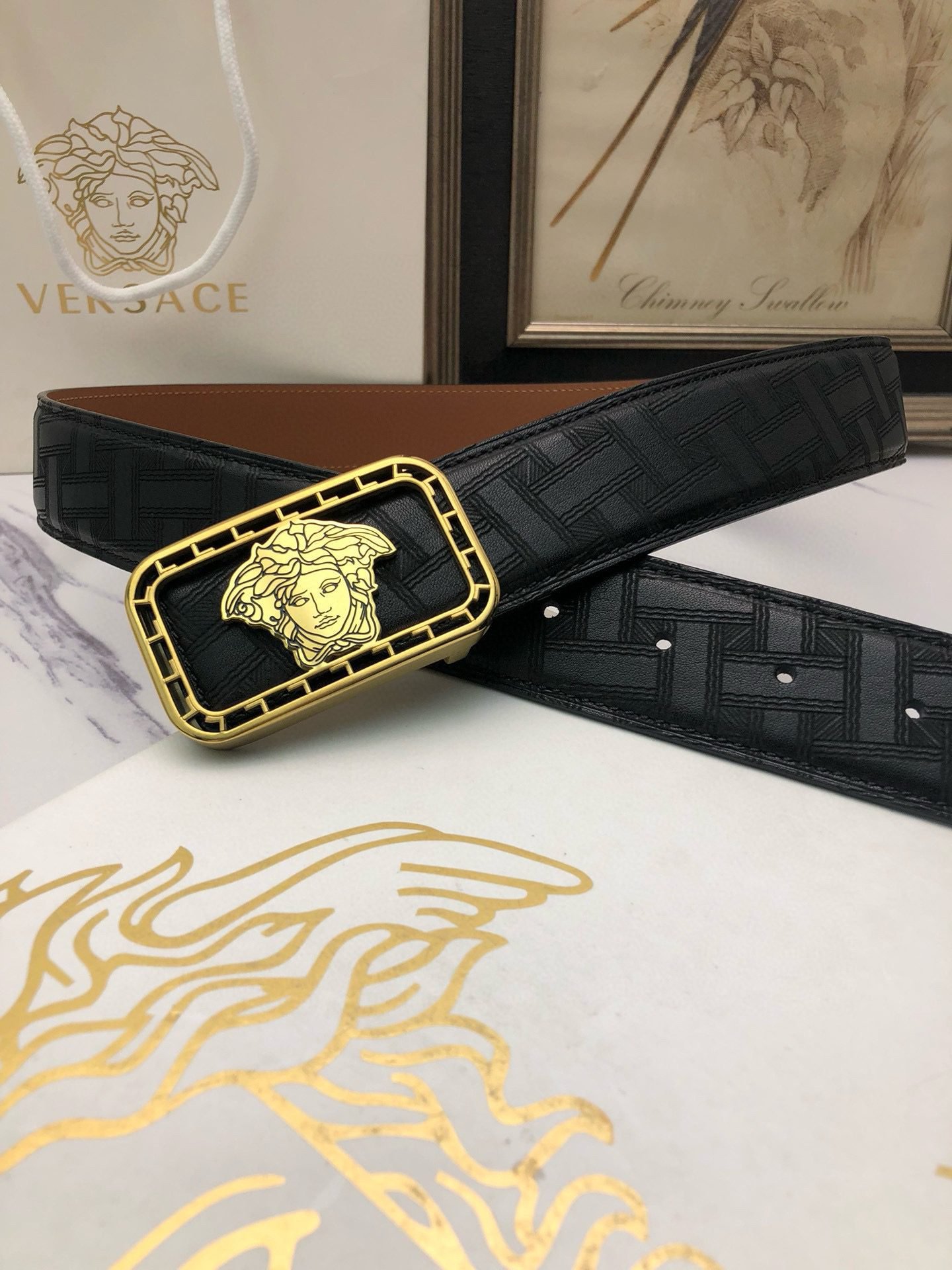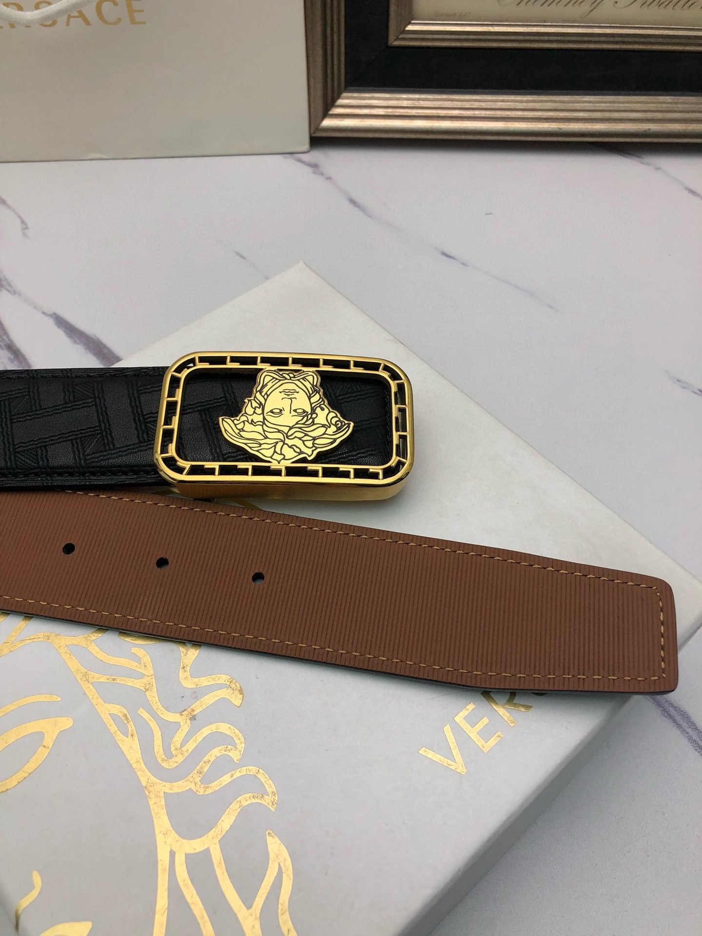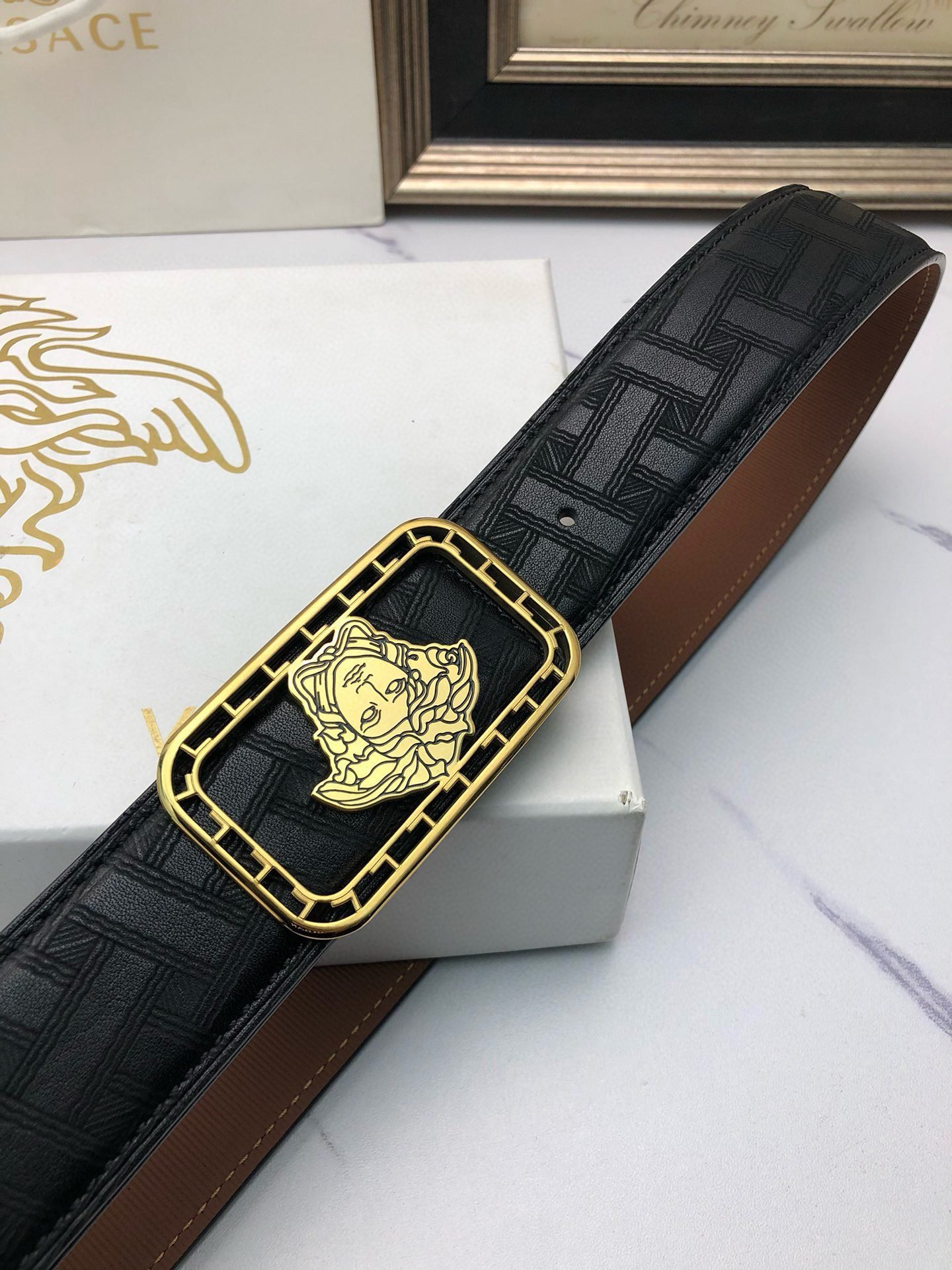 Be the first to review “Versace Gold Square Buckle Black Belt Classic Fashion Low key Luxury” Cancel reply